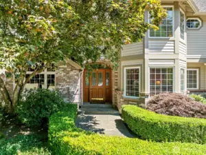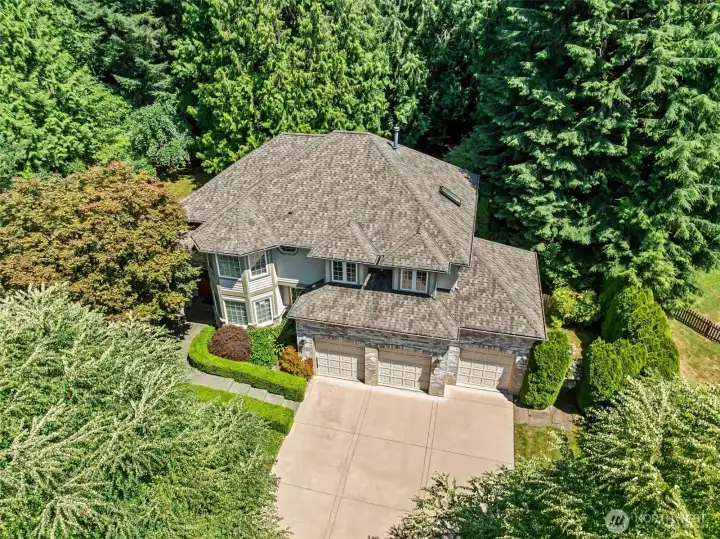Refined living in serene private setting in one of Woodinville’s premier neighborhoods: Aspenwood Estates. Soaring ceilings & walls of windows filled with light. Layout flows with ease - with formal & informal living spaces. French doors open to large patio & oversized yard with fruit trees and organic vegetable garden; ideal for relaxation and entertainment, backed onto wooded & dedicated NGPE for privacy. Kitchen features slab granite, SS appliances, five-burner gas cooktop with telescoping downdraft vent, updated cabinets with soft close doors, and walk-in pantry. Bar with eating space and additional in-kitchen dining. Spacious office/den with bay windows. Upstairs boasts spacious primary suite w/sitting area, walk-in closet & luxurious 5-piece bath. Three additional bedrooms (one is extra large for flex space) and a full bath. Enjoy the A/C. Wired for generator. Prime location in Northshore School District. A perfect blend of elegance and comfort. Welcome Home!