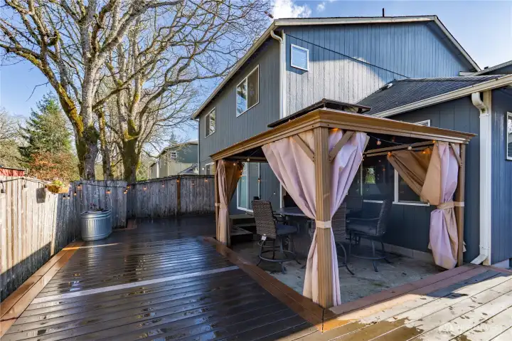 This Townhouse is a great place to relax or entertain with an open-concept layout on the main level and a cozy gas fireplace. The kitchen is the heart of the home with a large island, stainless steel appliances, vaulted ceilings and lots of windows giving plenty of natural light. Private backyard patio, with side yard for a dog run or working on your green thumb. There are no homes directly behind you, offering rare privacy, plus a deck ideal for relaxing or entertaining. Excellent location at the end of a cul-de-sac, conveniently located 15 minutes to JBLM with easy I-5 access, Costco, Home Depot, Safeway, WinCo, Walmart, downtown Olympia. Come and tour this home! Roof and gutter cleaning - 10/2025, Furnace replaced 11/2025, New flooring installed 7/2024, Added tiles and mantel to fireplace-2021, added vent for fireplace-11/2023. The metal and wood shelving in the garage, light fixture in dining room and window AC in living room convey. The Gazebo, plastic shelving in garage and TV mounts do not convey.