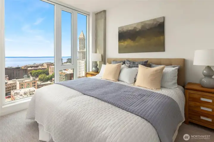Welcome to KODA—a bold, modern high-rise in Seattle’s vibrant International District. Thoughtfully designed homes feature generously lofted floor-to-ceiling windows, smart layouts, and sleek finishes. This two bedroom, one bathroom home features an open layout with breathtaking unobstructed views of Elliot Bay. Price includes one reserved parking spot, one storage unit. Enjoy unmatched amenities: a wellness center, rooftop terrace with sweeping views, coworking lounge, guest suites, and Club KODA with a theater, kitchen, and dining space. Steps from light rail, Uwajimaya, stadiums, and downtown, KODA blends urban energy with authentic cultural roots. Live where heritage meets modern living.