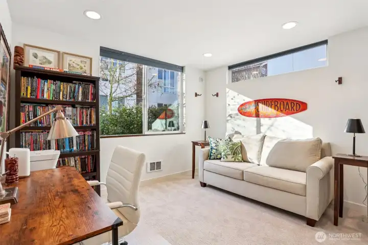 Thoughtfully designed and beautifully maintained, this STANDALONE townhome brings together modern style, warmth, and everyday ease. Sunlight pours into the main living and dining spaces, where 9 ft ceilings, generous windows, and a striking steel-accented gas fireplace create a welcoming place to gather. The open kitchen offers quartz counters, stainless appliances, and plenty of prep space, so cooking or hosting all feel effortless. Thoughtful updates include California Closets, custom blinds, and newer carpet, adding comfort and function throughout. Escape to the expansive rooftop deck for stunning views, summer evenings with friends, or a quiet morning coffee. A private carport plus rare exterior storage provides room for bikes, gear, and all the extras. All of this in a desirable Magnolia neighborhood with quick access to downtown, SLU, Ballard, and the Village by bike or transit.
