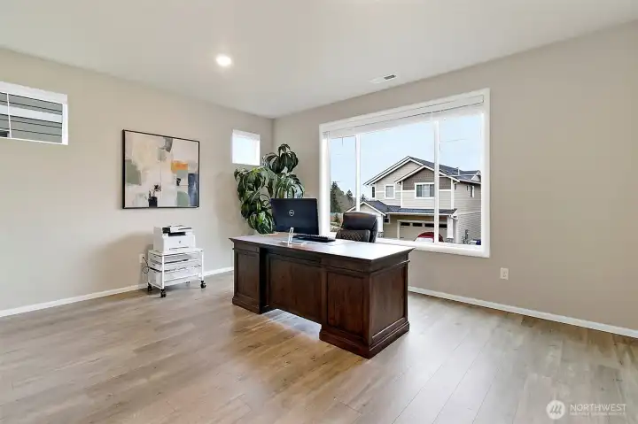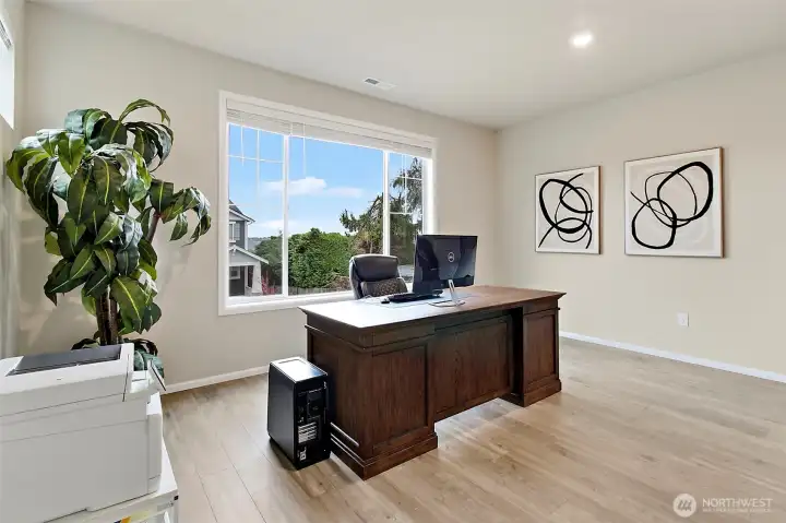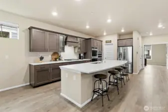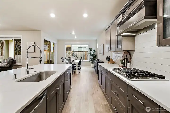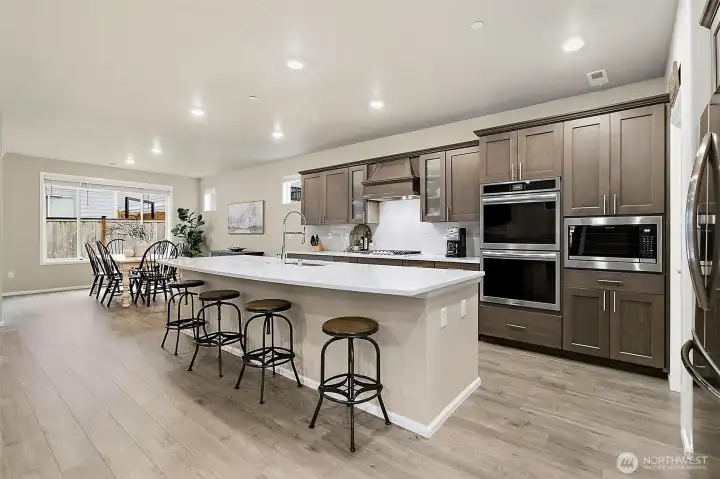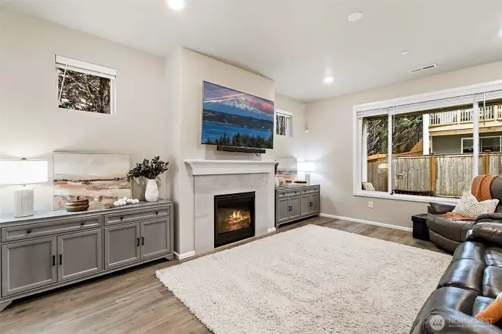 Experience elevated luxury living in this better-than-new 4-bedroom, 2.5-bath Lennar home in the highly desirable Oberon community. This stunning three-story residence offers refined design, thoughtful functionality, and exceptional craftsmanship throughout. The open great-room floor plan features elegant sight lines and abundant natural light, creating a seamless flow ideal for both entertaining and everyday living.At the heart of the home is the chef-inspired kitchen, showcasing gleaming quartz countertops, an oversized island, double ovens, walk-in pantry, and all appliances included. Designer details abound with white millwork, 5-panel doors, and sophisticated finishes at every turn. A private main-floor office provides the perfect work-from-home retreat.The great room off the kitchen boasts a cozy gas fireplace. The dining area opens to an entertainment-sized covered patio with an electric SunSaver screen, extending your living space year-round, plus a fully fenced yard for added privacy.Upstairs, unwind in the luxurious primary suite, complemented by three additional spacious bedrooms and a generous bonus loft—ideal for media, play, or relaxation. A large two-car garage with additional driveway parking adds convenience.Located in a beautiful newer community with a large neighborhood park and excellent commuter access to freeways, SeaTac Airport, major retail, and business hubs, this exceptional home offers the perfect blend of luxury, comfort, and location.