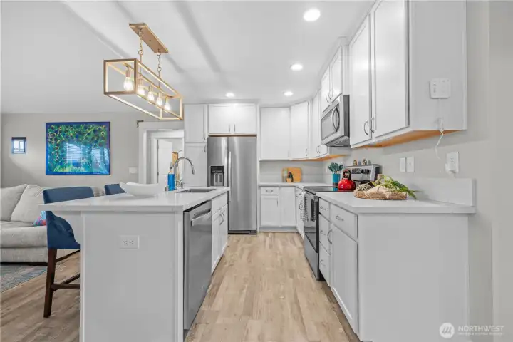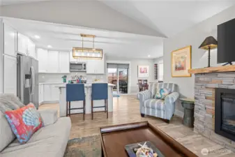 Ocean Shores home close to cabana pool & beach access! Located near Cabana Pool & Park with nearby beach-access trails. this inviting home blends comfort with coastal style. Bright sun-filled rooms, vaulted ceilings, and an open-concept layout create a welcoming atmosphere throughout. The kitchen is ideal for both daily living and entertaining, offering quartz slab countertops, a center island with breakfast bar, under-mount sinks, and premium waterproof flooring. Step outside to a fully fenced yard with beautiful landscaping, providing a private oasis for outdoor enjoyment. A wonderful combination of location, design, and finishes makes this Ocean Shores home a must-see!