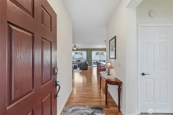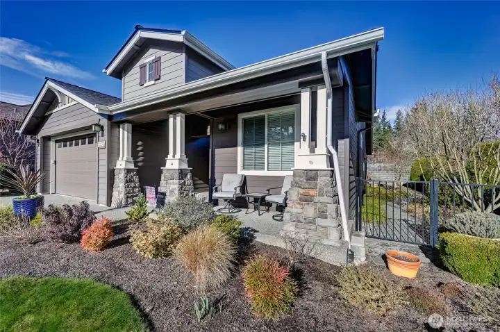 This pristine Vashon model home is set on an oversized lot and just a short stroll from the Cascade clubhouse, the center of Trilogy activities and amenities. This no step, level entry home features an open concept design and has been tastefully updated and extremely well maintained by the original owners. Gorgeous laminate floors flow throughout the great room which includes a built-in media center, surround sound system and gas fireplace. The island kitchen features new quartz countertops, subway tile backsplash and stainless steel appliances. Spacious Primary suite w/bay window, crown molding and walk-in closet. The en-suite bath features tile countertops and new faucets, light fixtures, rainfall shower and LVP “stone look” flooring. The 2nd bedroom with its adjacent, updated full bath is perfect for your guests. The home office separates the 2 bedroom wings and provides everyone with privacy. Low maintenance, private backyard includes a Trex deck, a paver patio & this area is fully fenced w/gates on both sides. Attached 48 SF garden shed. Full irrigation, both front & back. Widened driveway for easier parking. The finished garage features an easy care epoxy floor, storage cabinetry & racks, a large countertop and is still deep enough to park a crew cab short bed pickup. NEW ROOF IN 2024 includes the GAF Silver Pledge transferable warranty. HVAC updates in 2021 include a Bryant furnace & AC unit, Honeywell smart thermostat and AO Smith H20 tank. Gen-set ready. Ages 55+