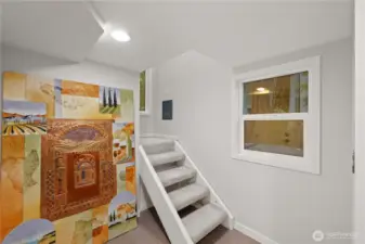 Designed by PNW architect Mike Daffron, this contemporary home showcases his unique style and sits quietly within a serene, wooded setting, offering privacy, territorial views, and a blend of seclusion and convenience. Exceptionally well suited for multi-generational living, the home spans three levels with two laundry rooms and multiple private spaces. The lower level includes two bedrooms, a bathroom with shower, a second laundry area with newer washer and dryer, a new vanity and toilet, and a flexible room with deck access. The upper level is dedicated to a private primary suite featuring its own laundry, ensuite bath, and a cozy wood burning fireplace. The top level adds another bedroom with bathroom and a loft seating area—ideal for guests or extended household members. The property has been meticulously maintained with major upgrades, including a 2023 roof, 2020 windows, updated attic and crawl space insulation, a new vapor barrier, ductless mini splits, an upgraded electrical panel, and a tankless water heater. The large, updated kitchen offers granite countertops, abundant cabinetry, a gas cooktop, double ovens, and excellent flow for both daily living and entertaining. A built-in bar with wine fridge enhances the home’s hosting appeal. Outdoor living is equally inviting, with a spacious composite deck overlooking tranquil surroundings and a 2025 seven-person hot tub with lounger. A Tesla EV charger adds convenience. Close to parks, trails, playgrounds, and amenities.
