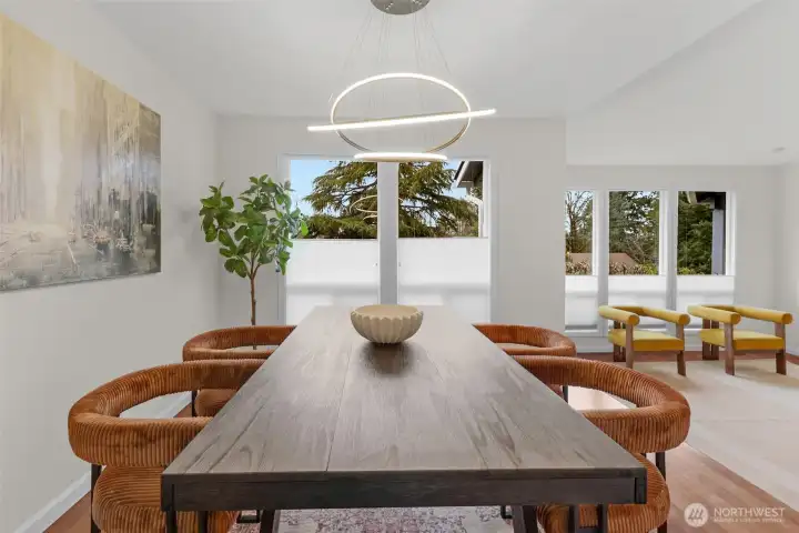 Welcome home to your Bellevue sanctuary, thoughtfully designed for versatile living! Located in the award-winning Bellevue School District with Newport High just minutes away, this spacious 4-bedroom, 2.5-bath home features an open layout ideal for both daily routines and special gatherings. Enjoy soaring vaulted ceilings in the formal living and dining rooms, seamlessly connected to a chef-inspired kitchen—making meal preparation and entertaining effortless. Picture relaxing mornings or evenings on the private deck, surrounded by lush, mature landscaping that provides a tranquil backyard oasis. Upstairs, the generous primary suite includes a walk-in bathroom and closet, offering a peaceful retreat. The large recreation room downstairs opens directly to the backyard, offering plenty of space for relaxation, play, hobbies, or hosting friends. Situated in the sought-after Horizon Heights neighborhood, this home boasts a two-car garage and is moments from I-90 and I-405, ensuring quick access to top employers like Microsoft, Google, Meta and Amazon. Don’t miss this opportunity to settle into a welcoming community with excellent schools, spacious living, and the ideal blend of privacy and convenience—perfect for anyone seeking comfort and flexibility in their next home!