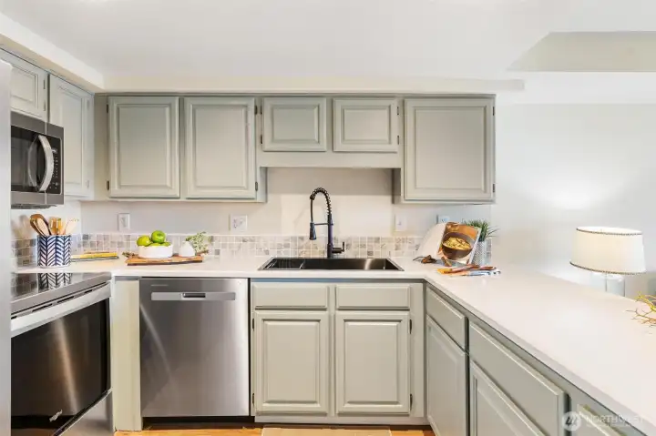Welcome home to this beautifully refreshed 2-bedroom, 1-bath Riverside condo, nestled within a historic brick building where classic architecture meets modern comfort. From the moment you step inside, the home feels bright, warm, and instantly inviting. The easy-flow layout is framed by large windows that fill the living, dining, and kitchen spaces with natural light. Thoughtful updates elevate every room, including fresh interior paint, new LVP flooring & carpet, updated lighting, refreshed kitchen countertops & cabinetry, a striking black stainless-steel sink, and a stylishly updated bathroom with a tiled shower. New baseboard heaters and a newer water heater add comfort and efficiency. The kitchen is designed for both form and function, featuring new stainless steel appliances, generous storage, and an open layout ideal for everyday living or entertaining. Additional conveniences include an in-unit laundry room, dedicated storage unit, reserved parking, and ample guest parking. Ideally located with exceptional accessibility, this home is just minutes from I-5 and Highway 2, with convenient access to Providence Hospital, Naval Station Everett, Everett Community College, Garfield Park, and the newly revitalized Everett Waterfront and Marina—offering dining, recreation, and entertainment. This move-in-ready home is rich with character and offers style, comfort, and convenience—an opportunity not to be missed!