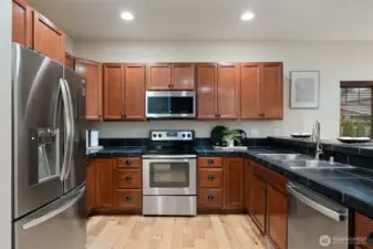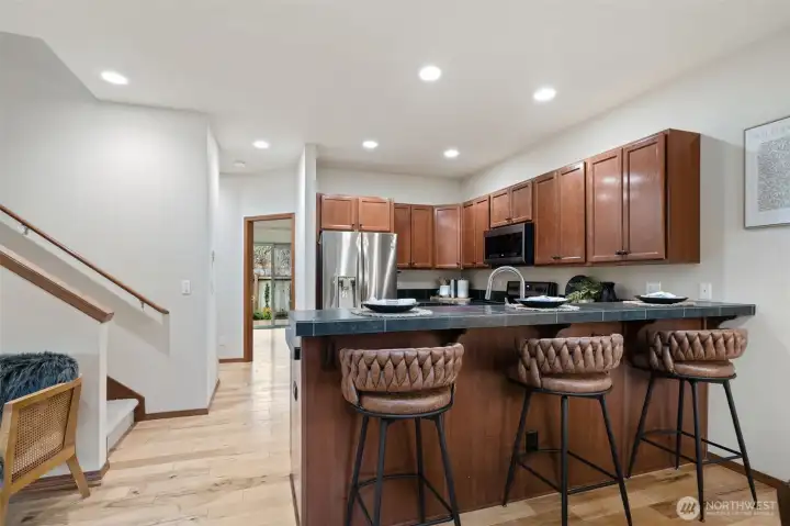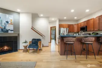 Commuter’s dream at 25794 Arklow Place! Perfectly positioned just 5 minutes from the Kingston/Seattle Fast Ferry, downtown dining, shopping, schools and beaches, this home offers an effortless connection to the city from the quiet Drew's Glen neighborhood. Situated on a level, fully fenced lot, the home boasts exceptional curb appeal with mature flowering trees and peek-a-boo Puget Sound views from the second story. The interior features an open floor plan with abundant natural light and rich hardwood floors. Living area features a gas fireplace for those chilly evenings or just great ambiance when you want to curl up with a book. Hosting gatherings will be a breeze in the chef’s kitchen, complete with a breakfast bar and ample prep space. The main-floor primary suite provides a private retreat with a walk-in closet, dual-sink vanity, and direct slider access to the deck. The upper level is designed for flexibility, featuring a large bonus room and a dedicated office alcove—ideal for remote work days. Two additional bedrooms and a full bath provide plenty of space for guests. Don’t miss the bonus shop area off the garage and the private, low-maintenance backyard. Recent improvements include new carpeting, fresh interior/exterior paint, updated appliances, a hot tub, and new LVP in the primary bath. Skip the long commute and enjoy the best of Kingston living. Tell your broker you want to see this home today!