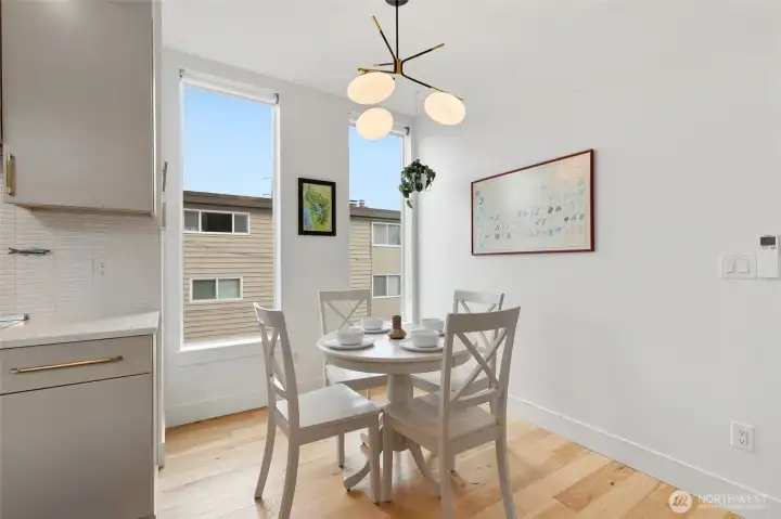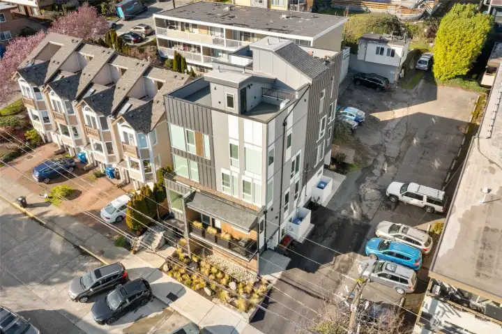Discover this bright, stylish, and spacious modern townhome, perfectly situated in the heart of Lower Queen Anne. Set back from the main road, this home offers boutique finishes throughout. The generous kitchen is a chef’s delight, featuring quartz countertops and Bertazzoni appliances. Tall ceilings and expansive windows on every floor create wonderfully airy, light-filled spaces. The roof deck offers stunning city views. A rare mezzanine level provides versatile bonus space, ideal for a workout area, media room, game space, or home office. Parking is easy with a private garage plus an additional spot in front for a second car. Best of all, there are no HOA dues! Enjoy a prime location just blocks from neighborhood favorites including Met Market, Citizen, and Laredo’s Grill.
