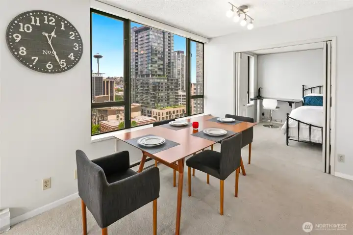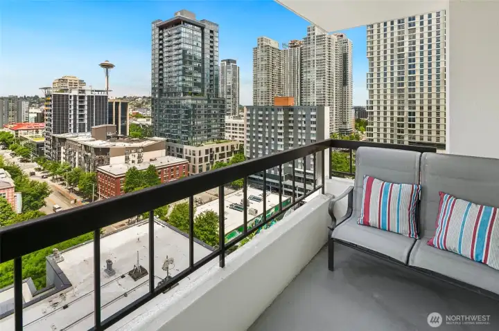 Perched in the heart of DT, enjoy the lifestyle that Belltown has to offer. This NW corner unit located on the 14th floor in the Grandview Condominiums is waiting for you. Stunning panoramic views of Elliott Bay, the Olympics, Space Needle & a gorgeous skyline all from your living room, both bedrooms & 2 private balconies. Fantastic open layout w/dining area, modern kitchen w/quartz counters, & 2 generously sized bedrooms. In-unit W/D & assigned parking space. Amazing Walk Score 98 & just minutes to the Space Needle, Pike Place Market, Amazon HQ, & waterfront promenade. Amenities include an indoor pool, spa, sauna, gym, BBQ area w/firepit, guest suite, & club room. A truly rare opportunity in one of Seattle’s most vibrant neighborhoods.