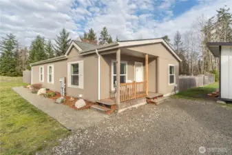 Freshly updated and move-in ready, this 1,333 sq ft home offers comfort, efficiency, and meaningful improvements throughout. The open-concept living area creates an easy flow, with 2 bedrooms including a primary suite featuring a walk-in closet and private bath. A versatile third room offers flexibility for a home office or guest space. Recent upgrades elevate comfort with a new Bosch heat pump, brand new carpet, fresh interior paint, newer kitchen appliances and a generator transfer switch for added peace of mind. Outside is where the property truly expands! The level, fully fenced backyard provides room to garden, relax, or entertain. A large shed with power, adds flexibility; ideal for projects, storage, hobbies, or workspace. Quiet location, and no HOA minutes to Port Townsend or Chimacum and Port Hadlock.