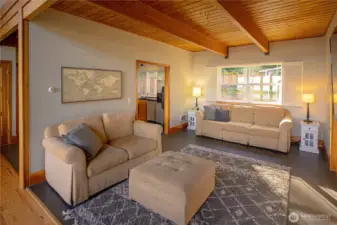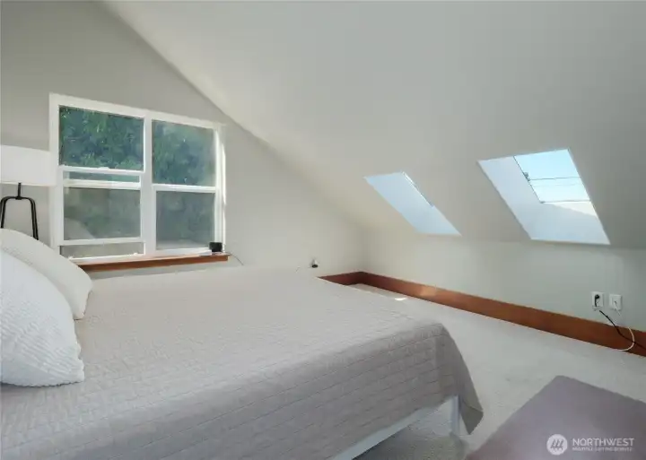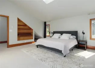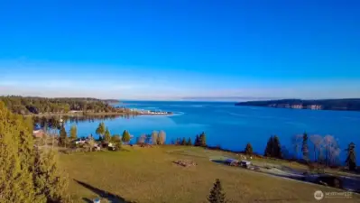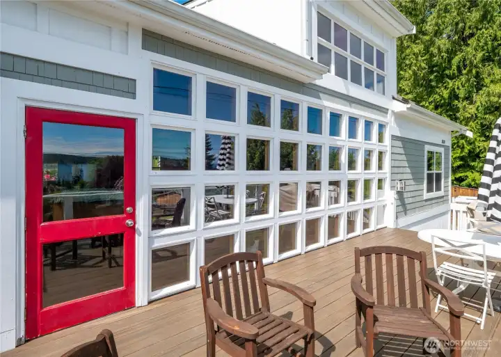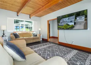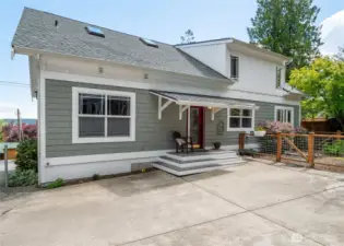 This open concept entertainer's dream cottage is uniquely designed with Cape Code features, soaring T&G ceilings, and a stunning window wall that showcases views of Sequim Bay... right across the street! Feel the easy flow of its main floor with a chef's kitchen, guest accommodations, and gorgeous wood flooring, along with a convenient front deck for morning coffee and dining alfresco. Continue up to a spacious 2nd floor Primary bedroom with water views, ensuite bath, and attached office space, then back down the charming spiral staircase to sit in front of the cozy fireplace. Explore the sprawling backyard oasis on its multilevel paver patio, relax and BBQ under the perfect pergola, or simply enjoy some peaceful outdoor fun. Take advantage of a fully furnished detached studio over the 2 car garage, perfect for visitors, hosting friends for game night, or renting out for easy income. Then don't miss out on a quick bike ride into downtown Sequim via the Olympic Discovery Trail... which can be accessed directly through your own private gate behind the house! With a variety of local shopping venues, restaurant and cafe options, coffee shops, golf courses, beaches, farm stands and more, talk with your Agent today and come see this incredible opportunity on the incomparable Olympic Peninsula, all just a short walk from the idyllic John Wayne Marina.