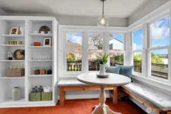 Perfectly perched on Phinney Ridge & 4 blocks from Green Lake...you really can have it all! This charming 1916 Craftsman lives large with the perfect blend of vintage & modern features. Rare 3 bedrooms on the main floor plus top floor primary suite retreat with vaulted ceilings, 1 of a kind luxury spa bath, den surrounded by windows & full length view deck with peek Green Lake & Cascade views. Enclosed sun porch entry to classic living & dining room with gas fireplace. Updated kitchen with concrete countertops & stainless steel appliances incl Miele range & corner eating nook. Lower level family room &/or work & play space for all ages. Storage, storage, storage, plus 240 sq ft garage & electric car charging station. Over 500 sq feet (per appraisal) of quality decking for seamless indoor outdoor living on 2 levels. Updated electrical & plumbing, tankless water heater, new gas furnace & fp, & nice double pane windows. Recent interior & exterior paint, new carpet, lighting & more. Close to coffee, pubs, restaurants, the Zoo & the Lake. Welcome home!