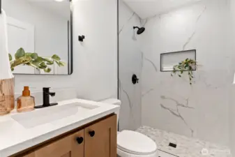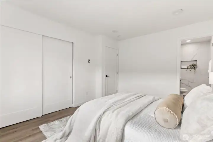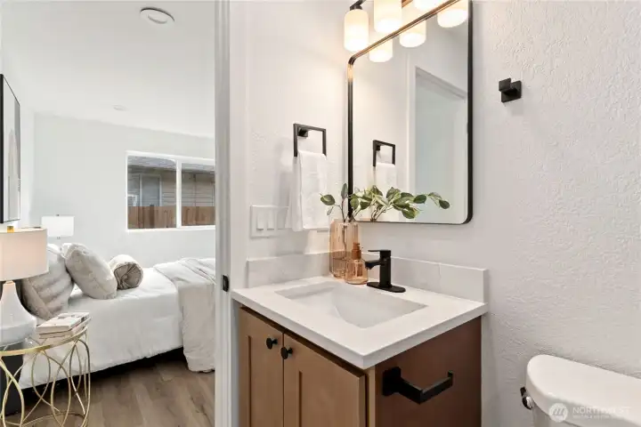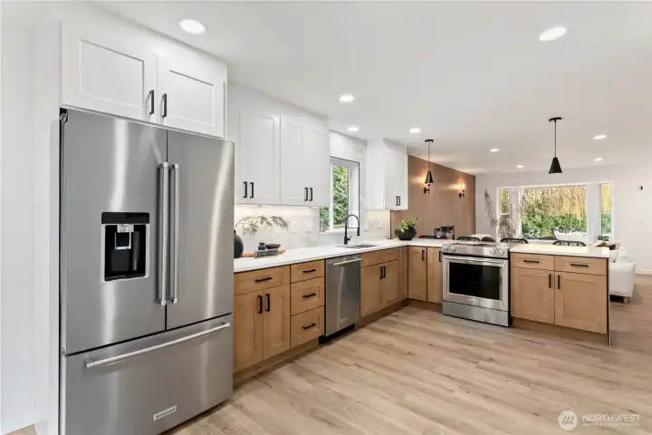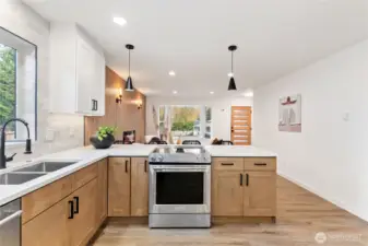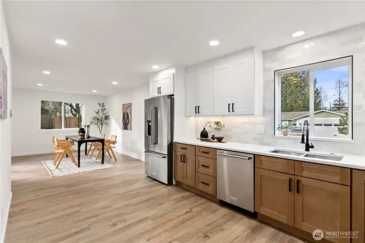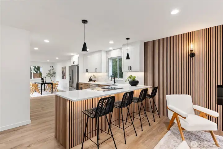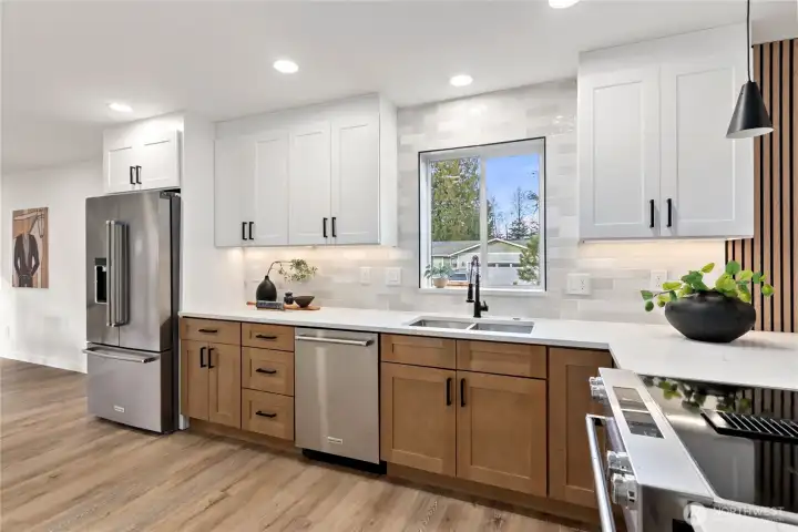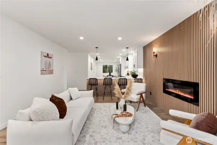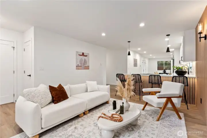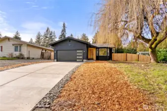 Absolutely turnkey luxury rambler in the heart of Puyallup, impeccably updated with designer finishes and exceptional curb appeal. Positioned on a desirable corner lot, this residence captivates with dramatic exterior colors, new poured driveway, RV parking, and a fully fenced private yard. Inside, a sophisticated open-concept layout showcases a stunning accent wall with sleek electric fireplace, seamlessly flowing into the chef’s kitchen. The space is appointed with a peninsula waterfall island, striking two-tone modern cabinetry, quartz countertops, stainless steel appliances, and a premium downdraft system—perfectly designed for both everyday living and elevated entertaining. The formal dining area opens to an expansive deck overlooking a generous backyard retreat complete with firepit, ideal for year-round enjoyment. The guest bath impresses with custom tile work, floating vanity, and curated designer finishes. The luxurious primary suite offers a spa-inspired custom shower and elegant floating vanity, complemented by two additional bedrooms providing flexibility for guests, office, or lifestyle needs.Conveniently located near premier dining, shopping, and commuter routes, with easy access to Joint Base Lewis-McChord and within the highly regarded Puyallup School District. This exceptional home blends modern sophistication, comfort, and prime location—an extraordinary opportunity not to be missed.