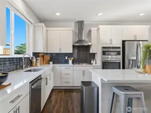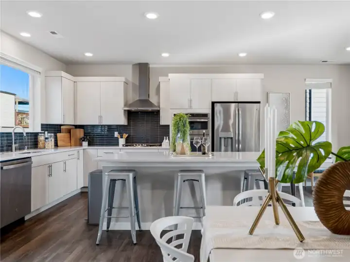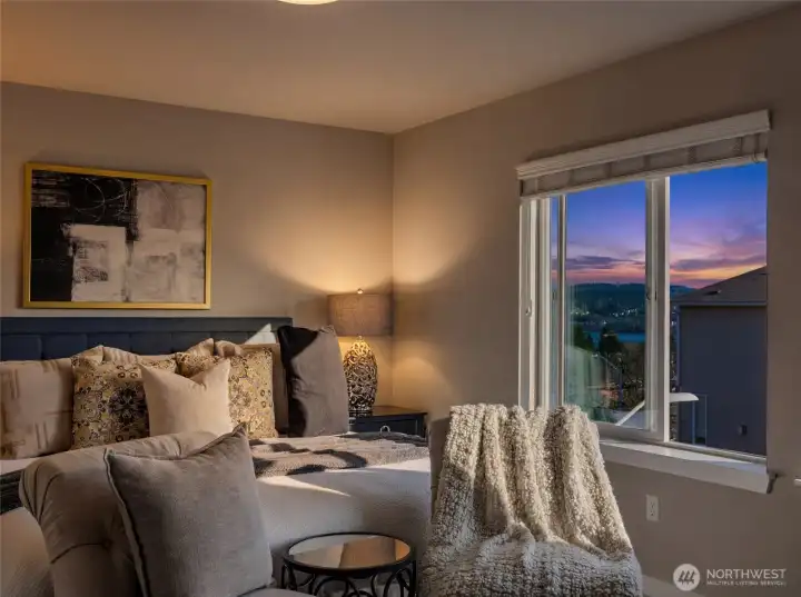Meet this stunning 4 bedroom home in Otani Gardens, offering beautiful lake and mountain views from the main floor and primary suite. Step onto the front porch and through the spacious entry, leading to your first floor bedroom/office/guest suite and 2 car garage with EV charger. Upstairs find a generous open layout perfect for relaxing and entertaining, with gorgeous eat-in kitchen and plenty of space for dining. Cozy living room has huge windows and floor-to-ceiling gas fireplace! One floor up, savor your luxurious primary suite with sweeping views, ensuite bath and walk-in closet. Two more bedrooms, full bath off the hallway, and conveniently located laundry room complete the upper level. Fenced backyard provides private outdoor space. Community playground, sport court and pond just around the corner. Shops, restaurants and other amenities within easy distance, transit nearby. 30 minutes by car to downtown Seattle and Bellevue. Comfort, convenience and luxury await! Come fall in love.