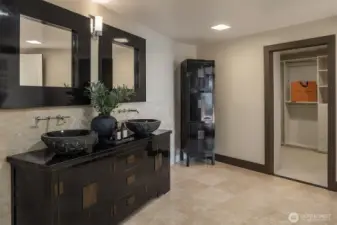 Perched on the quiet western slope of Three Tree Point, this fully reimagined mid-century retreat captures sweeping Puget Sound and Cascade Mountain views from nearly every room. Surrounded by trees for exceptional seclusion, the home blends sleek modern design with effortless comfort. The open, light-filled main level showcases vaulted ceilings, skylights, radiant heated tile floors, custom smoothed walls, and expansive windows framing the water. The entertainer’s kitchen features a large peninsula, eat-in island, glass-front Sub-Zero refrigerator, double wall ovens, walk-in pantry, and views from the cooktop. Dining space and a stylish powder bath complete the level. All three bedrooms are positioned together downstairs. The spacious primary suite offers stunning views, deck access, and a spa-inspired bath with soaking tub, dual-head shower, and custom walk-in closet. Two additional bedrooms and a full bath complete this floor. A versatile 600 sq ft lower level with private exterior access offers ideal ADU or multi-generational potential, currently built out with additional living space, fitness area, and wine storage. Enjoy over 1,500 sq ft of wraparound deck space. Set on a generous 19,000 sq ft lot with potential to build, plus a 2024 metal roof, foam insulation, detached 2-car garage, and ample driveway parking, this is turnkey view living at its finest.