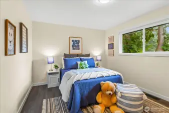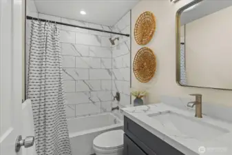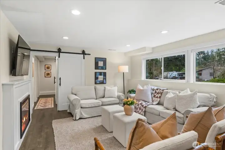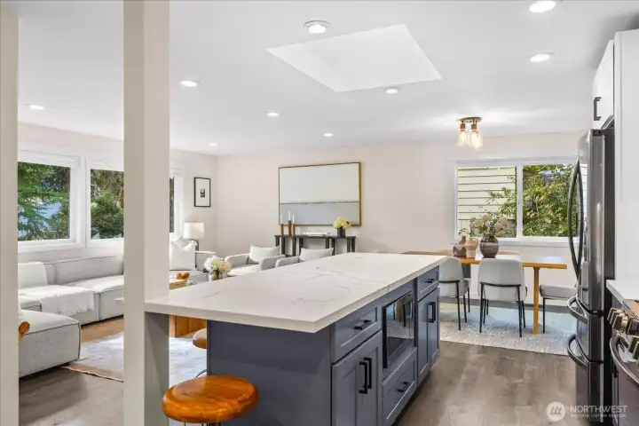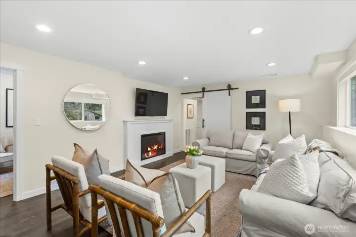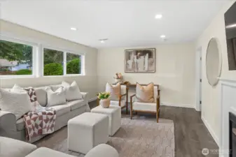 Tucked into a quiet cul-de-sac, this nearly ¼-acre Hillwood retreat offers an urban location with rare privacy and room to play—ideal for biking, gardening, and outdoor living. Inside, light-filled spaces and stylish finishes create an inviting, move-in-ready home. Extensively remodeled in 2022/2023 with new roof, updated electrical, new doors, modern fixtures, and all-new flooring throughout. Fully updated kitchen and bathrooms with all new cabinetry, quartz countertops, subway tile, and stainless appliances. The open great room flows seamlessly to a spacious deck—ready for summer BBQs and entertaining. Fully fenced back yard allows safe play for 2-legged and 4-legged fun. The lower level offers a versatile rec room, plus an office/guest room and generous storage. A 2-car garage with new garage doors and abundant driveway parking add everyday convenience. All of this in an unbeatable location—minutes to schools, parks, beaches, and quick access to I-5, light rail, and multiple express transit options. A beautifully updated home in one of Shoreline’s most desirable neighborhoods.