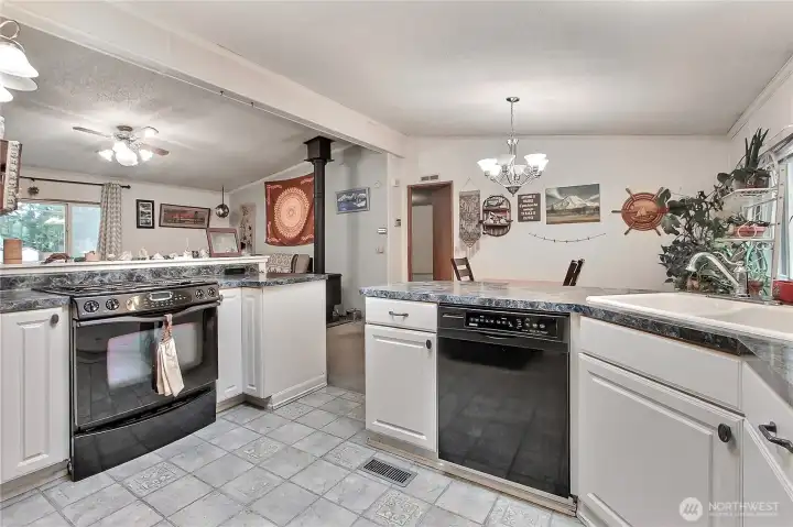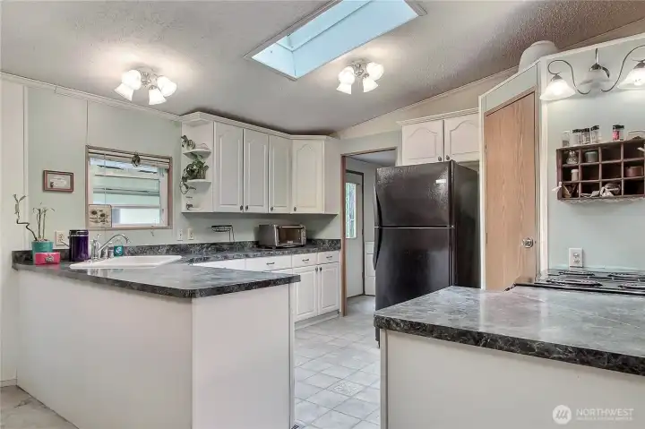 Welcome to this charming 3-bedroom, 2-bath double-wide manufactured home in the heart of Graham. Situated on a fully fenced, gated, level, 1-acre lot, this property presents a unique opportunity to create a lasting homestead. The 4-year-old roof offers peace of mind, while the oversized 2-car garage provides ample space for vehicles, and hobbies. There is an additional covered carport as well. Experience a serene setting with vibrant colors, especially during spring. The interior features a surprisingly open layout with the kitchen overlooking the dining area and living room, perfect for entertaining. The primary with bath and walk-in closet are on one side of the home and 2 other bedrooms are on the other. Additional highlights include a pantry, skylight, and convenient laundry room with deck access. This property invites exploration and the chance to visualize your future.