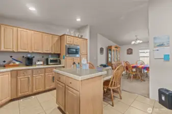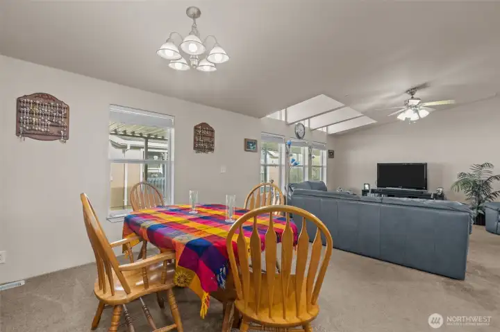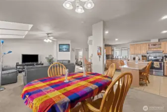 Beautifully cared-for and thoughtfully designed, an ANY AGE community. This spacious home offers nearly 1,900 square feet of comfortable living with three bedrooms and two full bathrooms. Soaring vaulted ceilings and abundant natural light create an open, airy feel throughout the main living spaces. The inviting living room features a striking skylight, while the island kitchen with breakfast bar provides the perfect setup for casual dining and entertaining. A generously sized family room offers flexible space for gatherings, movie nights, or working from home. The private primary suite includes a walk-in closet and a well-appointed five-piece bath for everyday comfort and relaxation. Step outside to enjoy the large covered deck ideal for summer barbecues and year-round outdoor living. Rarely available covered parking for three vehicles, plus an additional storage shed, adds exceptional convenience. A heat pump provides efficient heating and cooling for year-round comfort. The fully fenced yard offers privacy and space to enjoy. Conveniently located near Green River College, shopping, parks, schools, and major commuter routes, this home combines comfort, functionality, and an excellent location.