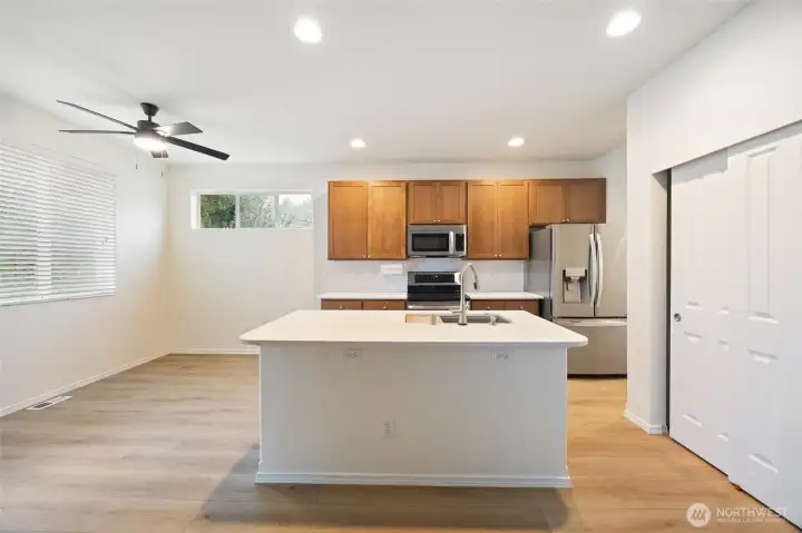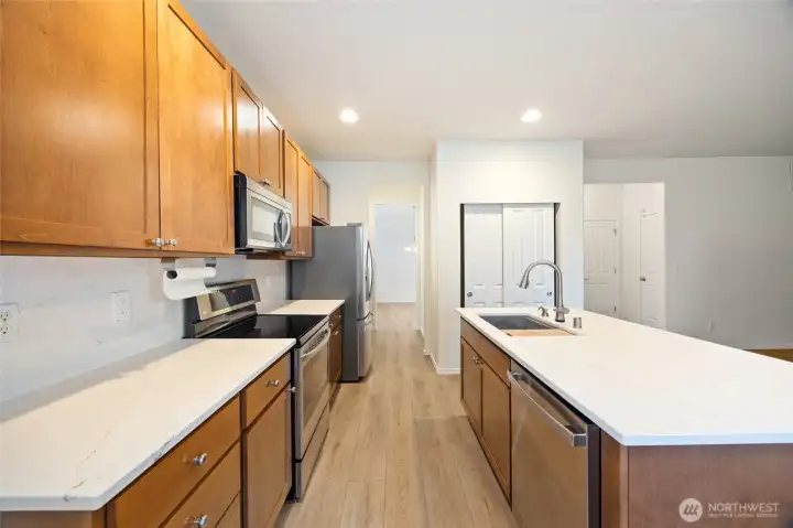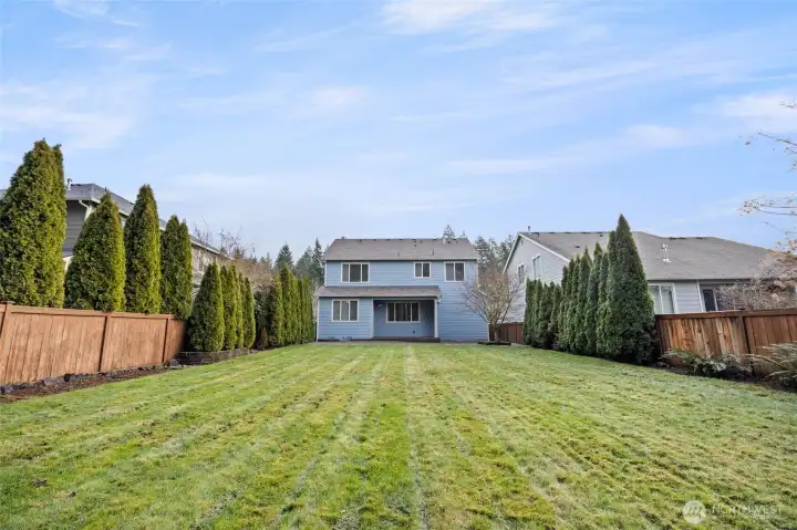 This beautiful 2 story has been meticulously cared for and boasts fresh interior paint and new carpet. This home sits on a supersized and super deep 8296 sq ft lot with a grass common space as a neighbor to the North. Up to the covered front porch and through the front door to find a Den/Office w/ glass french doors to the right. Continue on passed the formal Dining Room (served by a butler pantry) into the Great Room where you will spend most of your time. To the right, a well appointed kitchen w/ quartz counter island, pantry, breakfast nook and more. To the left, focal entertainment wall w/ built in, fireplace, and media mounting area. Upstairs let the master be your sanctuary vaulted ceilings, 5 piece en-suite bath & walk-in closet. The Bonus room/flex space is great large for multiple uses. Finishing out the 2nd floor, 2 additional bedrooms, shared full bath, and the laundry room. The oversized garage features room for suspended storage and boasts a shop area w/ work bench. Outside, the backyard has covered and uncovered patio, and a large fenced in yard. Come see it today! Thank you!