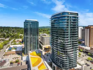 Discover your new luxury condo at Ave Residence in Bellevue. This elegant residence features a comfortable living space w/floor to ceiling windows illuminated by fresh lighting & opens to a private balcony with stunning city views. Find a great chef's kitchen, lots of storage, custom hardwood floors extend throughout and a private balcony overlooking the plaza. Retreat to the spacious bedroom which connects to the main balcony & the spa-like bathroom w/oversized shower, custom lighting and oversized vanity. Enjoy resort-style amenities such as a cutting-edge fitness facility, spacious lounges, on-site concierge, room service and valet parking. Live the 5-star life in the heart of Downtown Bellevue next to the new InterContinental Hotel.