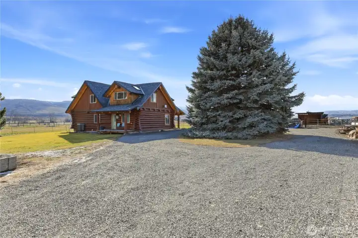 Set on just over 6 acres in rural Yakima, this custom log home offers the best of both worlds—privacy, space, and a peaceful setting, while still being close enough to town for everyday convenience. The 3-bedroom, 2-bath home features approximately 2,200 square feet and has been thoughtfully built and meticulously maintained. It’s over-engineered in all the right ways and designed to stand the test of time. The home is warm and inviting, with expansive views in every direction and plenty of open land surrounding it. Numerous upgrades have been completed over the years, including windows, doors, decking, heating and cooling, a whole-home generator, and major systems—making this a property that’s been truly cared for. Included plenty of extras for maintaining your new property! Book your showing today. The land is highly usable and exceptionally well set up. Four outbuildings, irrigated pasture with sprinklers and lines, hay storage, fencing materials, a round pen, and a dog kennel make this property ideal for a variety of rural uses. A large amount of equipment and supplies are included, such as a rebuilt tractor with attachments, mowers, fencing materials, hay, firewood, propane, tools, and more—offering incredible value and convenience for the next owner. This is a rare opportunity to own a fully equipped rural property that’s ready to enjoy from day one, whether you’re looking for a hobby farm, equestrian setup, or a quiet country retreat.