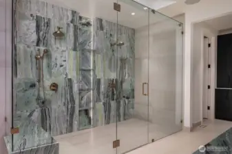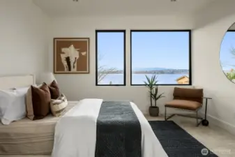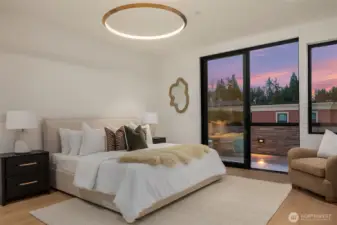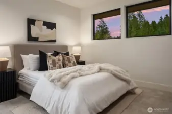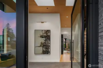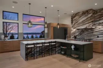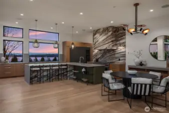 Introducing LIGHTWELL, an architectural statement built by Mirikeen Homes. This meticulously curated home set in Houghton blends Japanese wabi-sabi aesthetic with midcentury modern influence in a deeply livable design. The grand entry unfolds through a dramatic 10ft glass pivot door into a soaring foyer featuring a custom steel & glass floating staircase. Natural light pours in from 19 skylights & expansive windows that frame surrounding views. In the great room, a suspended gas fireplace imported from France is the first of its kind installed locally, framed by custom steel & wood built-ins with a Roman clay accent backdrop. The open main level flows outdoors through 2 multi slide doors to a covered patio & backyard, where landscaping, lighting, & irrigation shape outdoor spaces that reflect the home’s architecture. A statement chef’s kitchen with Wolf & Subzero appliances, 60in dual fuel range, 84in integrated refrigeration, & dramatic slab backsplash. Main floor ensuite with 14ft ceilings & private bath offers flexibility. Upstairs, a skylit gallery leads to the primary with sweeping views & private balcony. The spa bath features designer Ann Sacks fluted marble in Nubo Verde, a breathtaking stone with rich color & veining, complemented by a curbless shower & soaking tub. Nearly every bed is ensuite, all with heated floors. Lower level offers a media lounge with kitchenette. Smart lighting, whole home audio, pre-wired for shades & security, 21kW generator & 3-car garage.
