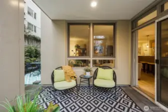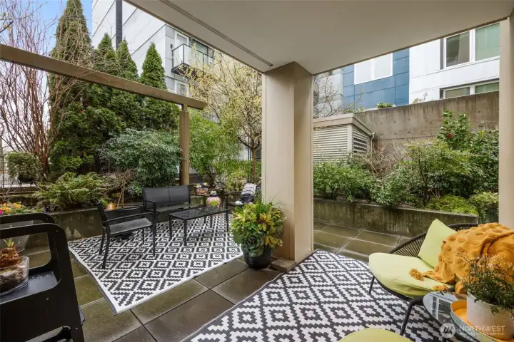 Discover the ultimate urban sanctuary in the heart of the most sought-after Ballard neighborhood. This contemporary condo has a rare private, serene, wrap-around 314 sf terrace, making it the best of both worlds! A corner-unit in a LEED Silver concrete and steel Building, spacious floor plan with a full bath and walk-in closet. The generous chef’s kitchen with built-ins, stainless steel appliances, dedicated dining space, extends seamlessly into the inviting outdoor area, doubling your space for entertaining. Oversize, tilt and turn windows let in beautiful light and envelop your living space with views of lush foliage (instead of your neighbor). In-unit washer/dryer. Easy-care LVP, stone and tile flooring throughout. Building amenities include rooftop deck with panoramic views & BBQ and multiple seating areas, gym, yoga room/library, large amenities room with outdoor patio & table/chairs (easily reserved for private gatherings), assigned parking & convenient storage. Pet friendly with no weight limits. Solid HOA. Dues cover all water, sewer, gas, earthquake insurance, landscaping, trash & common area maintenance. No rental cap. WalkScore of 98, BikeScore of 97. Easy access to downtown, Ballard Farmer’s Market, award-winning restaurants, shops, music, parks, beach & Burke Gilman Trail. Whether you seek a quiet zen retreat or to be steps from vibrant Ballard, schedule your showing today to experience this unique home!