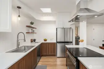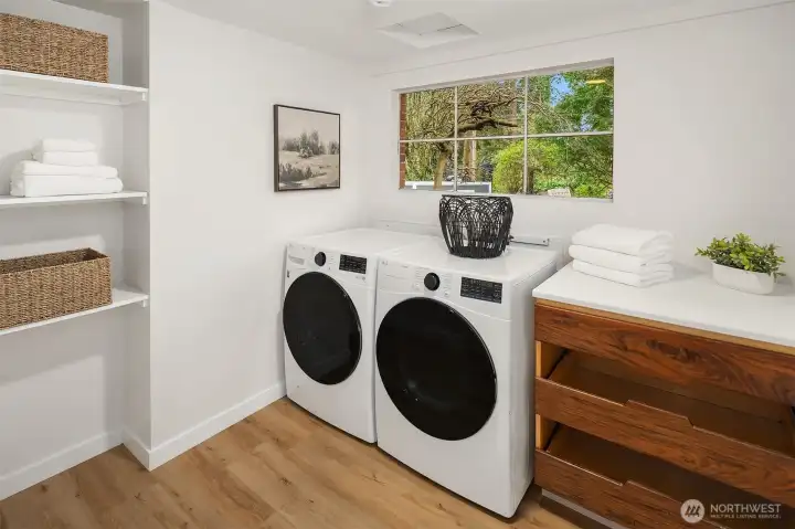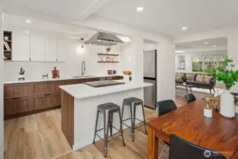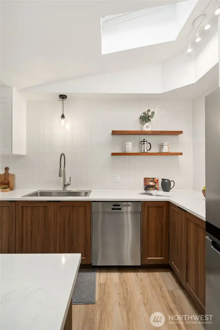 This beautiful midcentury-style Broadview Rambler has been extensively updated with major improvements completed between 2024 & 2026. Exterior upgrades include a new roof, new Hardie plank siding, new windows, full attic cleanup with new insulation & the installation of a top-of-the-line Mitsubishi Hyper-Heat pump system. The interior features a completely remodeled kitchen with a center island, quartz countertops, new cabinetry, beautiful tile backsplash & new appliances. Engineered hardwood flooring installed throughout & ceramic tile in both bathrooms. Stunning primary bathroom is completely redesigned & includes a spacious fully tiled walk-in shower with a freestanding tub & double vanity. The secondary 3/4 bath also tastefully updated. Primary bedroom offers a walk-in closet & direct access through French doors to a large private patio. The large front bedroom features an electric wall fireplace, built-in shelving & a comfortable sitting area. Additional updates include new interior & exterior doors, fresh paint throughout the interior & the exterior & new washer & dryer. Outdoors, there is a large mostly private patio ideal for entertaining & BBQing, new fencing & a fully fenced area on Eastside of the garage, perfect for a dog area or garden. The detached garage has a new garage door & a subpanel ready for a potential EV charger. A light & bright interior, move-in-ready home is located in a fantastic neighborhood on a corner lot, close to parks, shopping & restaurants.