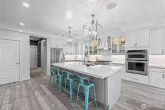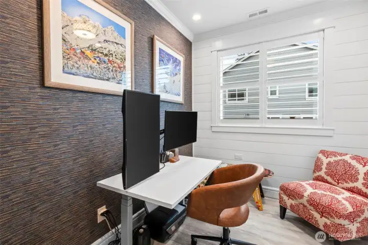 Situated within the gates at Bayview and just moments from Canterwood Golf & Country Club, this professionally designed residence showcases the elevated finishes and architectural detail that define a true model home. A crisp white interior palette creates a striking yet serene backdrop, enhanced by custom wall treatments, layered textures, and sophisticated statement lighting. Walls of windows fill the living spaces with natural light, while seamless indoor-outdoor flow extends to a covered outdoor deck designed for year-round enjoyment. The fully turfed backyard offers flat usable space - perfect for play, entertaining, or gathering around the fire pit, delivering function without the maintenance. Thoughtfully designed for both flexibility and comfort, the main level features a desirable full junior suite, ideal for guests or multigenerational living, along with a dedicated office for work or study. Upstairs, you’ll find three additional bedrooms, a spacious bonus space, and conveniently located laundry, creating an effortless everyday flow. This is a rare opportunity to own a former model home where no detail was overlooked.