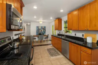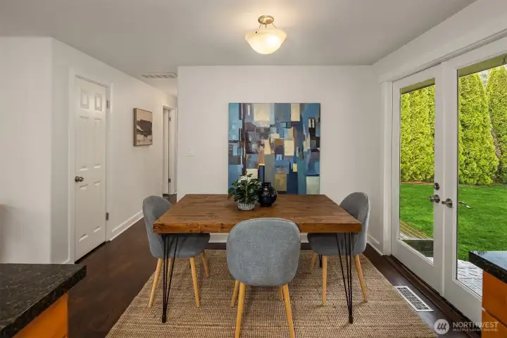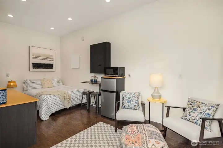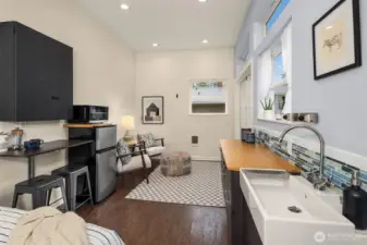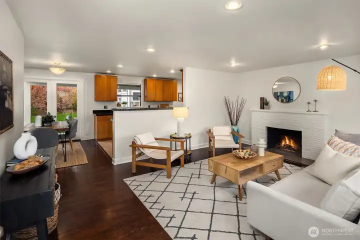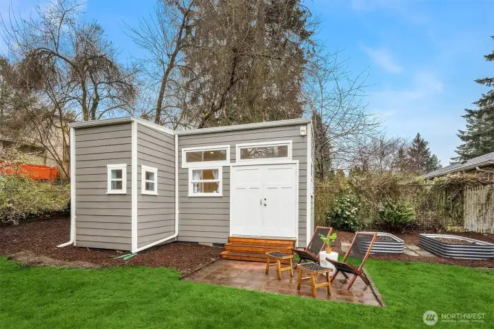 Live near the excitement & feel the charm of this wonderful 3 bedroom rambler with a “tiny house” in the back. Nestled on a quiet street in Shoreline's North City neighborhood. Step inside & you will find a welcoming open floor plan w/gleaming hardwoods & wood-burning fireplace. The spacious kitchen features granite counter tops, & stainless steel appliances. Laundry/utility room has lots of extra storage space. French doors off the dining room open up to a gorgeous fully-fenced back yard, huge covered patio for entertaining, raised garden beds & BBQ. Tiny house has a studio w/kitchenette & 3/4 bath. Perfect for remote office or rent it out for extra income! New roof, chimney & efficient furnace 2022. New gutters 2026. Great investment potential on an oversized level lot. Top rated Shoreline schools! Close to excellent amenities & just 1/2 mile to light rail station. Easy access to I-5, Shoreline CC, Northgate, downtown & airport. Lovingly maintained and fully inspected so you can move right in! Enjoy fantastic city living with a small neighborhood feel!