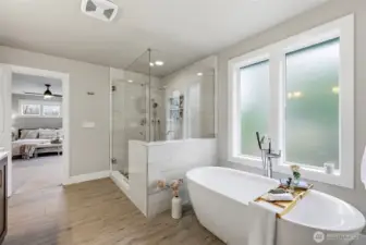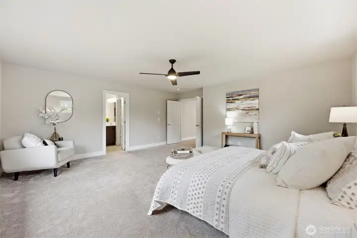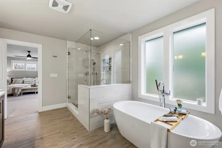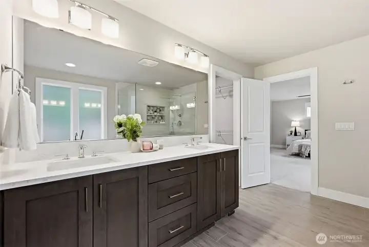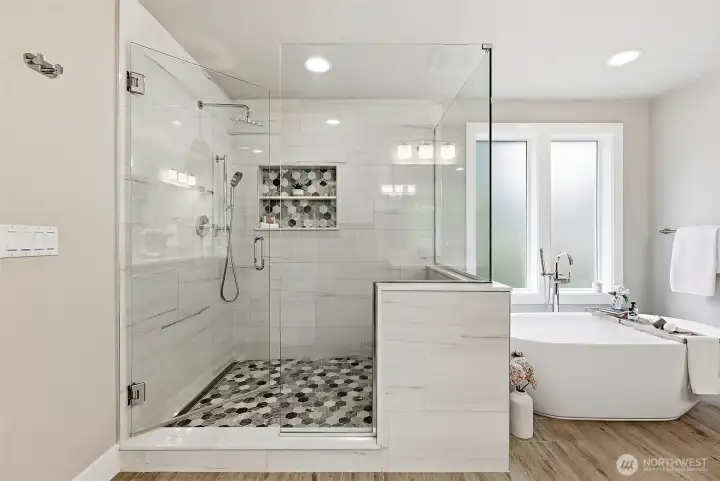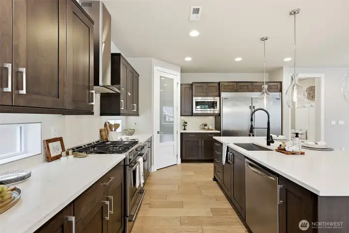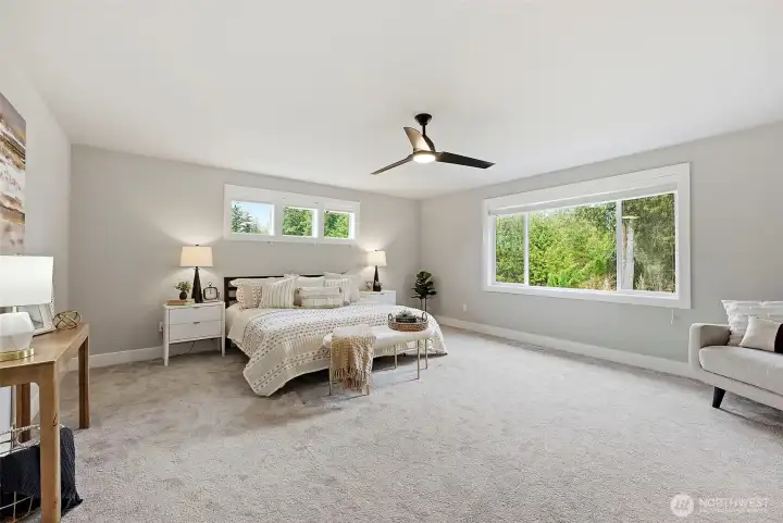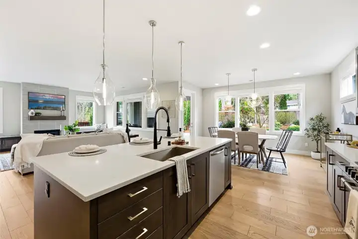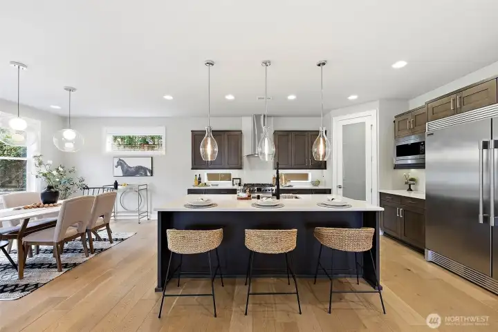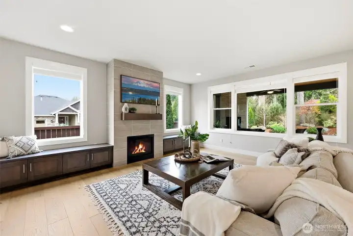 Nestled in the highly sought-after Legacy neighborhood of Gig Harbor, this stunning home blends timeless style with thoughtful updates throughout. A grand two-story entry greets you with a beautifully designed staircase, setting the tone for the sophisticated design. The kitchen is both functional and refined, featuring quartz countertops, under cabinet lighting, soft-close cabinet drawers and doors, and Frigidaire Professional Series stainless steel appliances, including a five burner gas range, and a 66 inch refrigerator. Great room offers a cozy fireplace and a built in LG TV, flowing seamlessly into the dining area and out to the covered deck with outdoor fireplace-ideal for year round entertaining. The spacious primary suite is a true retreat, boasting a fully remodeled spa-inspired bath with custom walk-in shower, quartz countertops, updated lighting, and designer plumbing fixtures. Upstairs, enjoy a versatile loft/bonus room, walk-in closets in all bedrooms, and a conveniently located laundry room. The oversized two-car garage features and EV charger and overhead storage racks. Surrounded by mature trees and low-maintenance landscaping, this lovingly maintained home reflects exceptional pride of ownership.