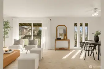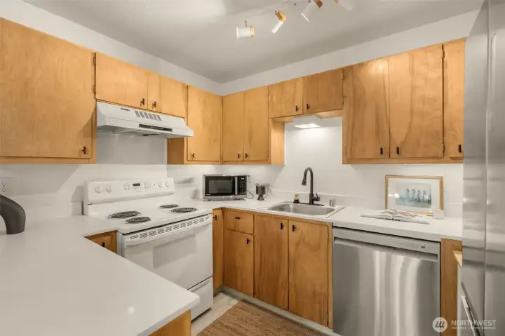Thoughtfully updated condo in Benson Hills with a spacious, open layout and plenty of natural light. New carpet, fresh paint, plus an updated kitchen with new countertops and a stainless steel refrigerator. Bathrooms with upgraded cabinets and laminate flooring. Spacious primary with an en-suite bath. The second bedroom works well for guests or a home office. Enjoy gorgeous sunsets from your own private deck. Community features include: a newly finished sauna, a sports court, a heated outdoor pool, and beautifully maintained grounds. Convenient, ample guest parking and 1 dedicated parking space, with an ideal location near shopping, transit, and freeway access. No rental cap adds long-term investment flexibility.
