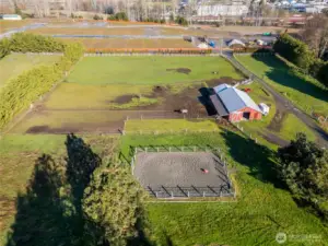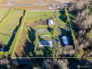 5+ Acre Equestrians Property just minutes from town. The home features a 2 car attached garage, ductless mini heat pump, a cozy wood stove in the living room, and a beautiful sunroom complete with a gas fireplace—ideal for year-round enjoyment. Step outside to the expansive, brand new deck, perfect for entertaining guests or relaxing while taking in breathtaking sunsets. This well-equipped property is ready for your agricultural or equestrian pursuits, featuring a 1500 sq. foot barn with two stalls (with room for more), plumbed amenities, and a walk-in cooler. The horse arena provides ample space for training and riding. A spacious 3720 sq. ft. shop offers 220 power, cable, wood stove, and air compressor and a "mechanic's pit" —ideal for projects, storage, or business needs. Need even more room for equipment, firewood, etc, don't miss the additional 555 sq. foot building. Agnew irrigation adds valuable functionality for farming or livestock. Conveniently located just a short drive to Sunny Farms Country Store, downtown Sequim, and the scenic Dungeness Spit. Enjoy peaceful rural living with easy access to town amenities—this mini farm truly has it all.