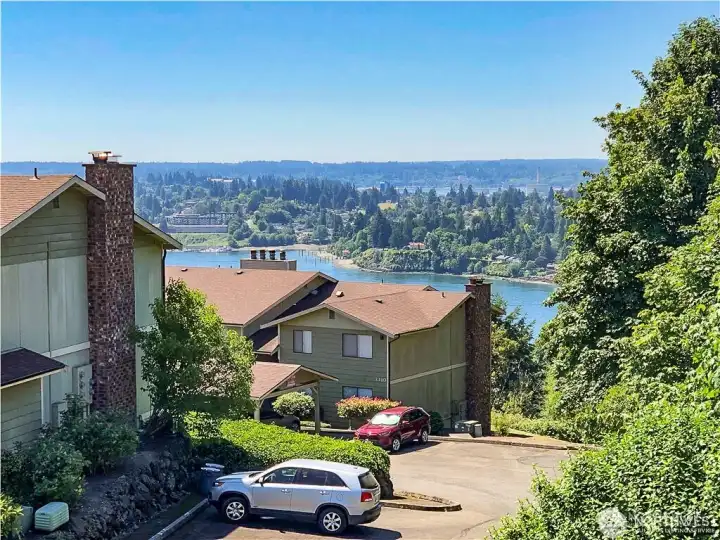 Pristine updated ground floor end unit Condo, no steps. Southeast territorial views of Mt Rainier and Puget Sound. Amazing sunlight filled exposure in Living room, dining room and new deck. New renovated kitchen with Corrian hard surface countertops, new custom cabinetry with soft closure and appliances. Big primary bedroom with walk-in closet. Hall bath newly updated with walk-in tile shower, vanity and commode. Walkable community, Club house big enough for a crowd, outdoor pool being re-tiled this spring in time for pool opening in May. HOA includes water, sewer, exterior building maintenance and landscaping. Secured storage unit in basement of this building. Close to PSNS & Seattle Ferry.