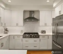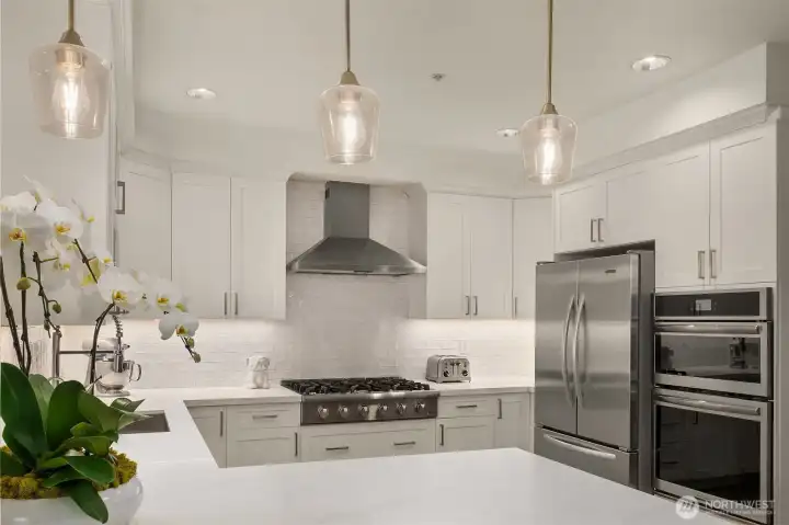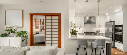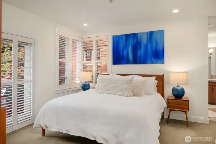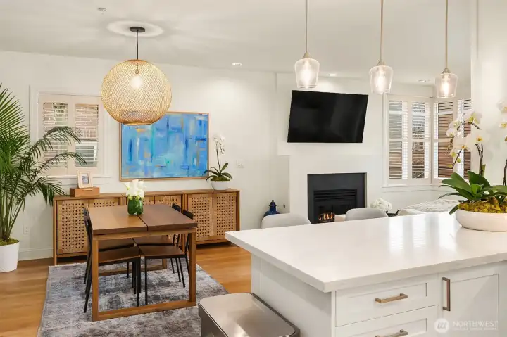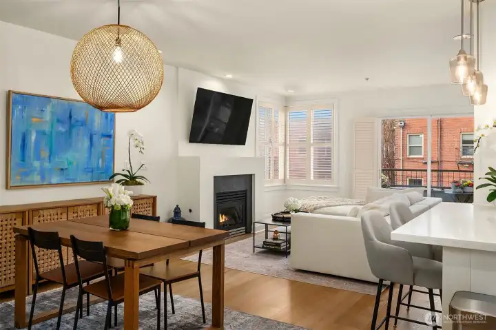 Stunning home in a gorgeous 6-unit brick boutique community in highly desirable Lower Queen Anne! This beautifully renovated residence features 3 bedrooms and 2 full baths with premium finishes throughout. The chef’s kitchen showcases gas range, stainless steel appliances, quartz countertops, a breakfast bar, and $50K in thoughtful updates. Light-filled living room offers a cozy gas fireplace and French doors opening to a sunny southwest-facing porch. The spacious primary suite includes a large walk-in closet and a luxurious 5-piece bath with a large soaking tub and separate shower. Recent upgrades include 3 new mini-split A/C systems, updated guest bath, new luxury vinyl flooring, and updated light fixtures. Custom window shutters and handcrafted Shoji doors add elegance and privacy. Enjoy in-unit laundry, 2 secure parking spaces, a large storage unit, a strong HOA, and a pet-friendly community (2 pets allowed). Walk Score of 96 with easy access to coffee shops, dining, groceries, Downtown Seattle, and South Lake Union.