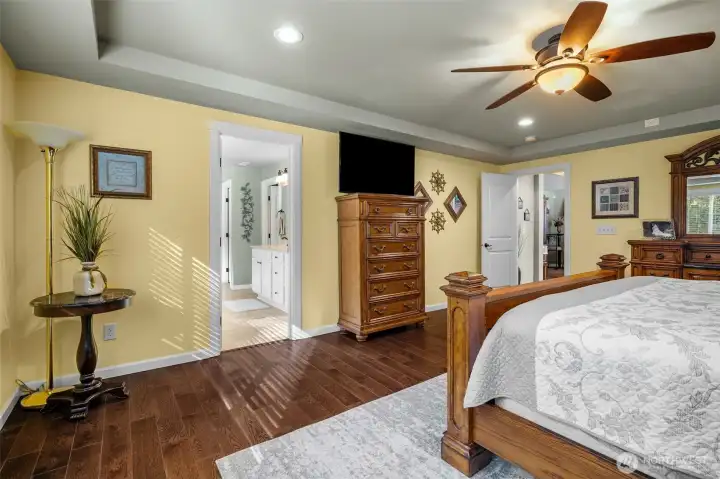 Welcome to Tehaleh—and get ready to fall in love. This absolutely stunning Richmond American resale is the one buyers wait for: nearly 4,000 square feet of beautifully upgraded, meticulously maintained living space on a premier greenbelt lot. With 5 bedrooms, 4 baths, AC, a private office, and a spacious bonus loft, this home delivers the size, layout, and flexibility today’s buyers demand. The chef’s kitchen is a true showpiece, boasting double islands, abundant cabinetry, and a statement refrigerator that anchors the space—perfect for hosting unforgettable holidays and packed gatherings. The main-floor bedroom and full bath offer ideal guest or multi-gen living. Upstairs, the luxurious primary suite impresses with a spa-inspired bath and a large walk-in closet built to handle it all, plus three additional bedrooms and 2 more baths. The finished 3-car garage with epoxy floors is clean, sharp, and ready for action. Step outside to an entertainer’s dream backyard featuring a massive covered patio, stamped concrete lounge area with hot tub, garden beds, and shed—all backing to serene greenbelt privacy. Add mountain views from upstairs windows, 40+ miles of trails, 14 parks, and award-winning schools, and you have one of Tehaleh’s finest opportunities. Homes like this don’t sit—come see it before someone else does!