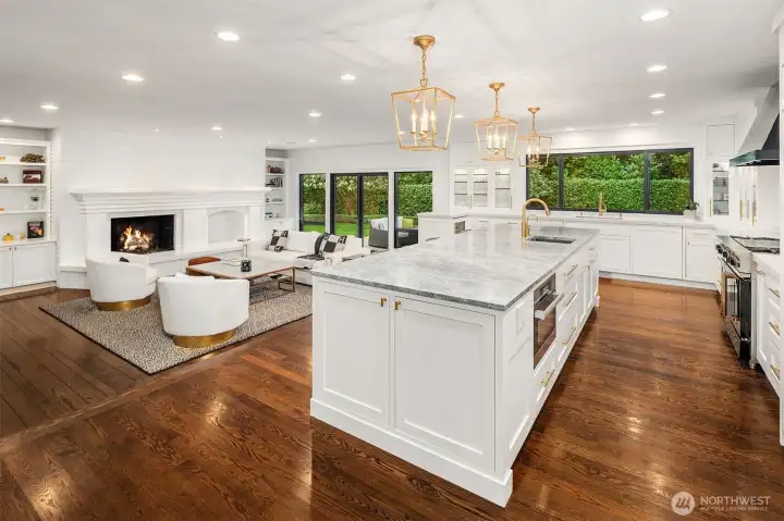Experience refined living in the heart of Medina! Extensively remodeled 5 BR residence offering coveted access to shared waterfront with private lakefront recreation, a recently rebuilt dock with moorage. Beautifully landscaped, shy level half-acre, this exceptional property blends timeless elegance with modern functionality. Reimagined in 2017 with quality craftsmanship & luxurious finishes throughout. The chef’s kitchen is a true centerpiece, featuring dramatic marble surfaces, premium appliances, abundant prep space, and seamless flow into the adjoining family & dining rooms. Expansive windows frame tranquil garden outlooks and fill the interiors with natural light, while the thoughtful floor plan provides an ideal balance of open gathering spaces & private retreats. The primary wing is a sanctuary of its own featuring dual oversized closets & a spa-inspired 5-piece marble bath. 3 additional bedrooms are privately positioned in the south wing, creating flexibility for guests, home office needs, or multi-generational living. The expansive lower level introduces a large great room perfect for entertaining, media, fitness, or play, along with an additional bedroom or office. Ideally located just moments from Overlake Golf & Country Club, Medina Park & the beloved local market and post office. Close to downtown Bellevue, world-class shopping and dining. A rare opportunity to enjoy privacy, proximity, and an exceptional Medina lifestyle with lake access.