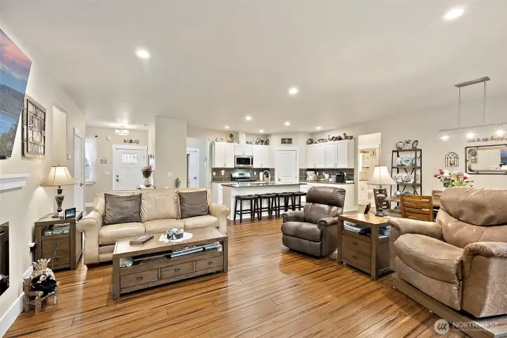Well-Cared-For Rambler in Summit Place II – McCleary, WA! Beautifully maintained 3-bedroom, 2-bath rambler located in the desirable Summit Place II community of McCleary. This inviting home offers a spacious open-concept floor plan with warm wood floors and abundant natural light throughout. The kitchen features a functional island, propane range, and seamless flow into the dining and living areas—perfect for entertaining. Cozy up to the propane fireplace on cooler evenings and enjoy the comfort of single-level living. The primary suite provides a relaxing retreat, while two additional bedrooms offer flexibility for guests, hobbies, or a home office. A dedicated utility room adds convenience and extra storage. Car enthusiasts and hobbyists will appreciate the oversized 3-car garage, plus an additional storage shed complete with a covered porch for even more versatility. Step outside to your peaceful backyard oasis—backing directly to forest for privacy and serene views. The low-maintenance yard and back deck make outdoor living easy and enjoyable year-round. This move-in ready home combines comfort, functionality, and a tranquil setting—don’t miss your opportunity to own in Summit Place II!