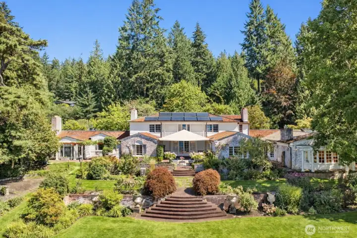 Tucked behind the gates of The Highlands, 72 Olympic Drive — once known as Cedargrove — is a timeless Georgian Colonial estate where nature, privacy, and gathering come together effortlessly. A winding approach leads to a circular drive and a welcoming arrival, while oversized doors open to a light-filled entry framed by sunset views of the Puget Sound and Olympic Mountains. The main level lives like a spacious rambler, anchored by a brand-new chef’s kitchen, family room, and seamless indoor-outdoor flow to terraces, rose gardens, and expansive lawns. A private primary suite with dual baths and water views offers a peaceful retreat, while five bedrooms upstairs and an indoor half basketball court create space for play and connection. Recently remodeled by Shultz Miller, the home blends classic architecture with modern comfort. Life in The Highlands offers quiet security, private beach access, trails, and community spaces — a rare balance of freedom and serenity.