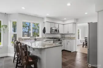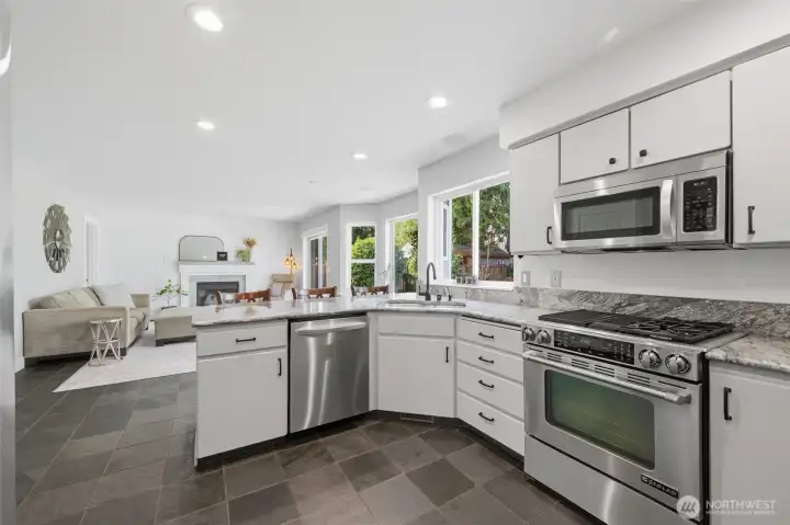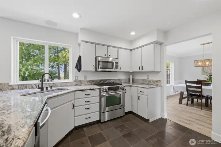 Completely renovated home in the highly sought after Bayhill neighborhood. This 2,381sq ft home with 4 bedrooms, wonderful layout plus an attached studio space is everything you have been looking for. Main level includes new flooring throughout living room, dining room, family room & renovated kitchen with upgraded high end appliances & granite countertops. Separate studio space for your office or bonus room with second entrance off front. Upper level with primary suite, gorgeous bathroom with tile shower, soaking tub, double sinks & spacious walk in closet with built in organization. 3 spare rooms plus two 3/4 bathrooms & upstairs laundry for extra convenience. Private backyard oasis with sport court including basketball hoop & patio to enjoy. Recent upgrades include roof, hot water tank, paint inside & out, furnace, primary bathroom, flooring & trim on main level, landscaping + sprinkler system. Conveniently located close to the Skagit Golf & Country Club as well as just minutes to I5 for your commute.