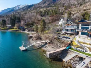 Discover relaxed lakefront living in this beautifully designed South Shore home featuring a main-level primary suite, a versatile loft, and a fully finished lower level. With 2,429 sq ft of thoughtfully planned space, this 3 bedroom, 3.25 bath retreat offers comfort, privacy, and sweeping views of Lake Chelan from strategically placed windows throughout. The main floor showcases an inviting great room with vaulted ceilings, a stone fireplace, and seamless flow to the kitchen and dining areas. Downstairs are two additional bedrooms, each with their own bathroom which provides ideal accommodations for guests. The loft offers flexible use as an office, bonus room, or additional sleeping area. Outside, enjoy 50 feet of pristine waterfront, a private dock, boat lift, and sun-drenched shoreline perfect for summer days on the lake. Two view decks, a two-car garage, and well-chosen updates make this an exceptional four-season getaway on one of Chelan’s most desirable stretches of shoreline.