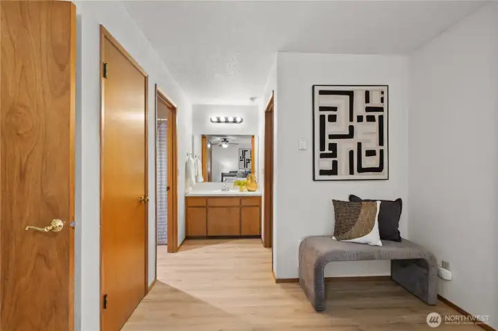 Charming, light-filled townhouse-style condo in a small, well-maintained community. The open, spacious main level features new flooring throughout, a convenient powder room, and a seamless flow between the living room, kitchen, and dining area. Upstairs, two generous primary suites offer private baths and large walk-in closets, plus a cozy reading nook ideal for work or relaxation. Enjoy the ease of low-maintenance living with a 1-car attached garage, two additional surface parking spaces, ample storage, and a fully fenced yard with fresh, new grass. All appliances stay for a truly move-in-ready experience. Located in the Award Winning, Mukilteo School District and close to shopping, Boeing, I-5, and everyday conveniences.