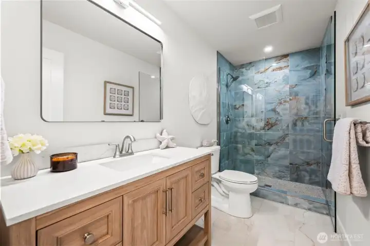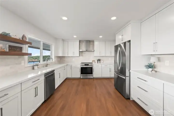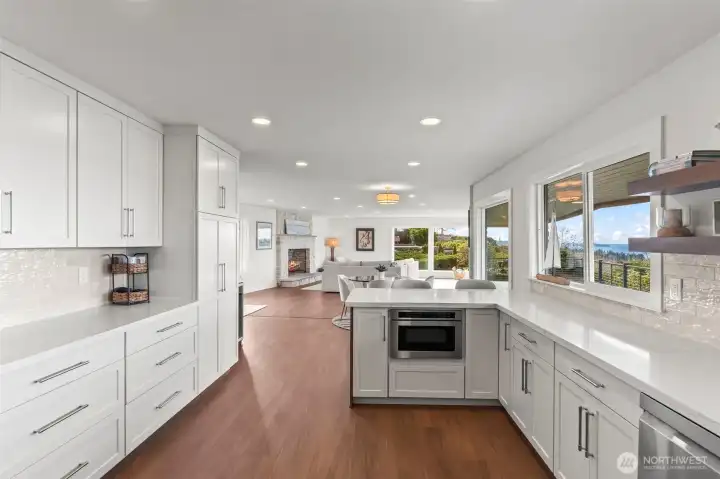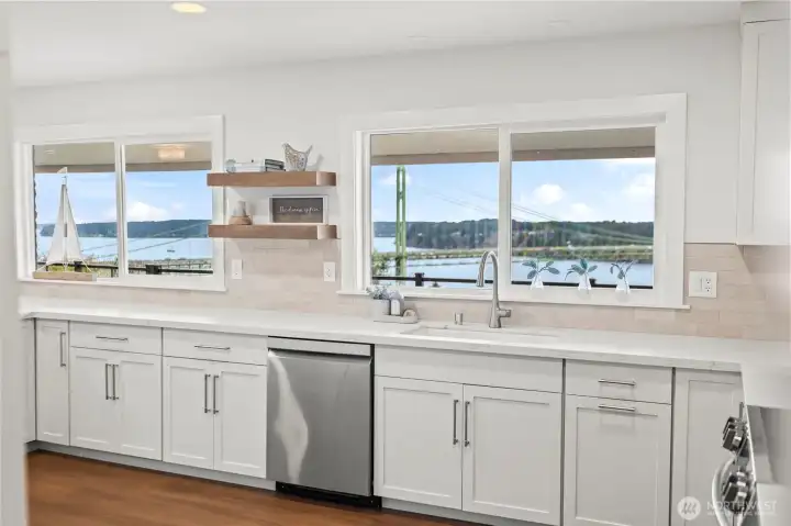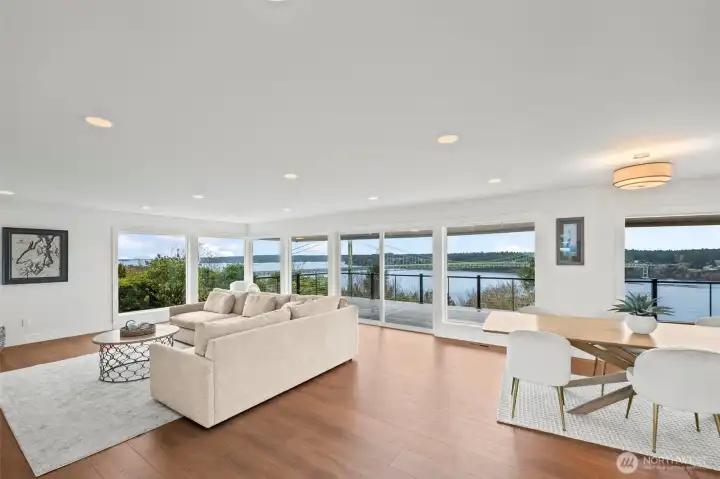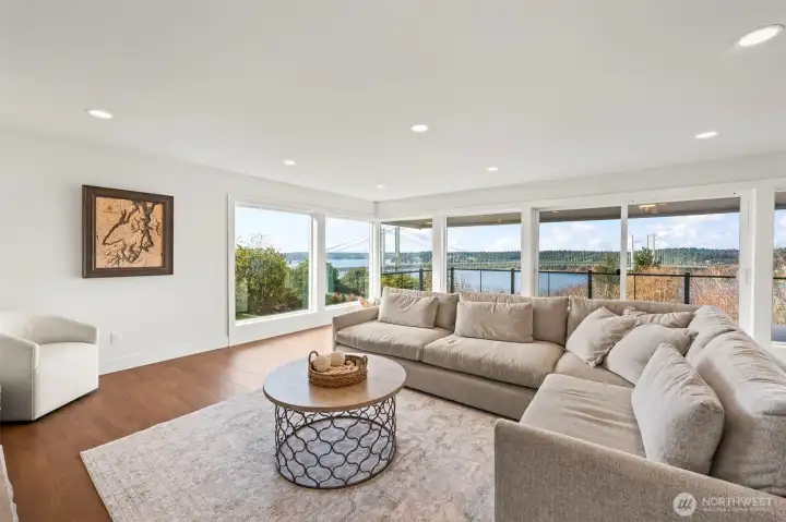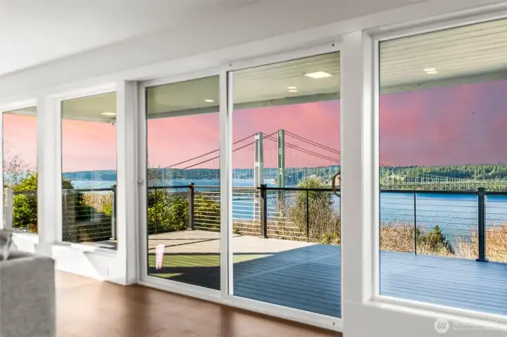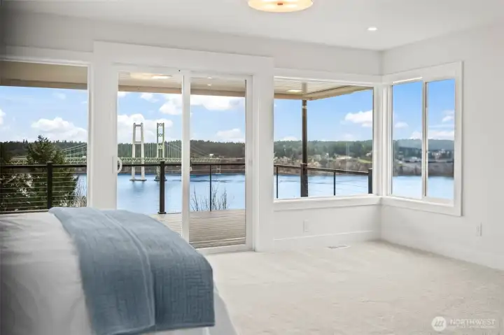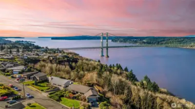 Enjoy unobstructed, front-row views of the water, Narrows Bridge, and Olympic Mountains from this exceptional 4-bedroom, 3-bath home. The sweeping panoramic scenery takes center stage- offering breathtaking sunrises, sunsets, and sparkling evening lights. The open-concept living space flows effortlessly to an expansive view deck, creating the perfect setting for elevated entertaining or peaceful evenings overlooking the Sound. A spacious chef’s kitchen features custom cabinetry, abundant storage, quartz countertops, and elegant wine fridge. The primary suite offers a custom bath and shower, generous walk-in closet, and private access to the deck with stunning views. The expansive lower level provides additional entertaining space, fireplace, full laundry room, and flexible living quarters ideal for guests or multi-generational living. Privately situated on a quiet dead-end street, yet less than a mile from freeway access—this home offers the perfect blend of luxury, privacy, and unmatched Tacoma views.