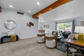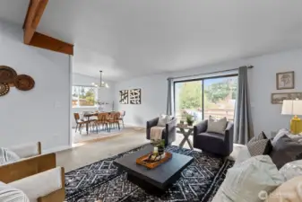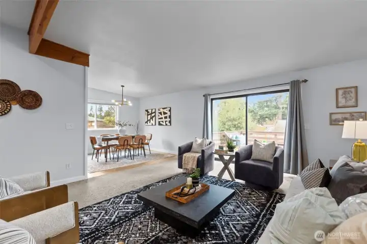 Opportunity meets flexibility in this beautifully situated Shoreline home offering over 1,600 sq ft of living space on an expansive 9,400+ sq ft level lot. Featuring 3 bedrooms, 2 baths, plus a versatile den, the spacious open floor plan is enhanced by vaulted ceilings, fresh interior paint, and abundant natural light. The updated kitchen and bathrooms provide modern comfort, while the back deck creates an easy flow for outdoor entertaining and everyday living. The generous lot offers boat/RV parking and room to expand, garden, or reimagine. An approved permit to convert the garage into two additional bedrooms presents an exciting opportunity for an adult family home or flexible multi-generational living setup. Ideally located within walking distance to cafes, dining, parks, grocery, schools, and light rail, this property also sits within. Shoreline’s sought-after MUR-35 zoning. Whether you enjoy it as-is or explore redevelopment potential, MUR-35 encourages townhomes, ADUs, DADUs, duplexes, and small-scale multifamily residential development—making this a compelling investment in a rapidly growing corridor. Comfort today, opportunity tomorrow. Pre-inspected for your convenience. Welcome home!