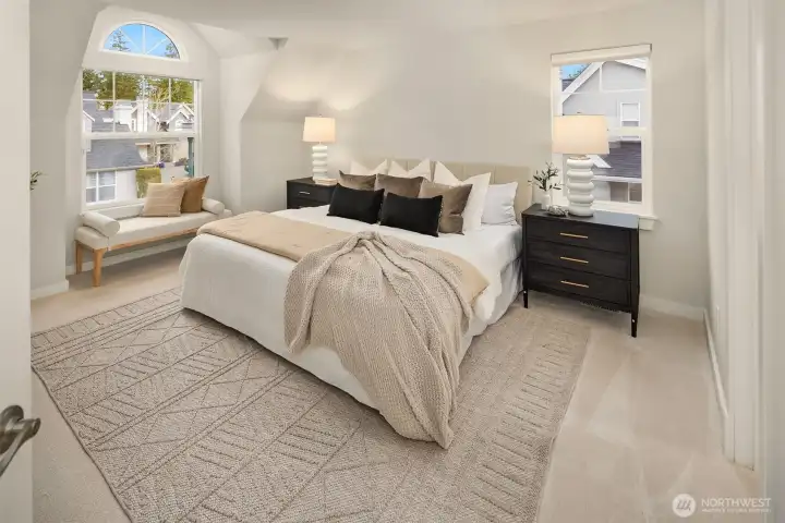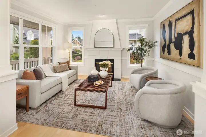 Welcome home to "The Cottages". A highly desirable community nestled in the heart of the Issaquah Highlands. Sun drenched home with a favorable floor plan and tasteful updates throughout. Refinished hardwoods, brand new carpet and updated Primary bath, this home has been meticulously maintained and is move in ready. Light and bright main level features large family room with a gas fireplace, large Den with built in shelving and separate entrance, beautiful dining room and large kitchen with eat up island and breakfast nook. Kitchen also features french doors out to courtyard, perfect spot to enjoy your morning coffee. Updated Primary bedroom on the 2nd level features large bay window and walk in closet with custom shelving. Two Additional, very large, guest rooms upstairs which could also function as 2nd home office or bonus room. 2nd level laundry. Roof was recently replaced and exterior siding was freshly painted. New furnace, hot water heater installed in 2024. New A/C installed in 2022. Plumbed for a generator. Walkable to all Issaquah Highlands amenities, Grand Ridge Plaza and popular Ashland Park. Highly sought-after Issaquah Schools and Grand Ridge Elementary. A sophisticated urban lifestyle set against a backdrop of quiet beauty.