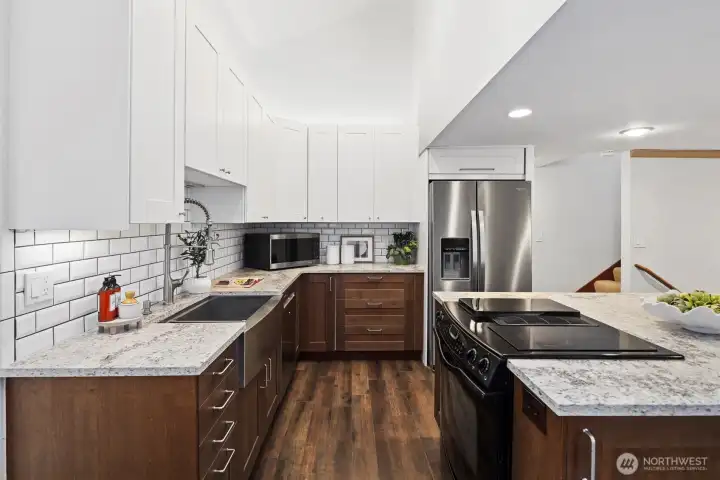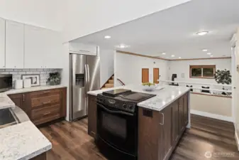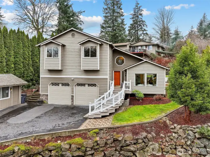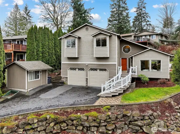 Welcome to this beautiful 4-bedroom home in the coveted Cherokee Bay community. Perched on a hill at the end of a quiet dead-end cul-de-sac, this home offers both privacy and charm. You’ll love the access to the lake, complete with a private community dock, clubhouse, parks, and sport court. This tri-level home opens to soaring 18-foot ceilings in the living room, large windows, newer laminate flooring, and brand-new carpet. The kitchen was fully remodeled just a few years ago with new cabinets, quartz countertops, stainless steel appliances, and a large island. It opens to both the back deck and the lower-level family room, creating an ideal flow for everyday living and entertaining. Upstairs, you’ll find a cozy bonus room with built-in bookcases and a work nook, along with four spacious bedrooms. The hall bath features a newly installed tub surround and new LVP flooring. The oversized primary bedroom includes a seating area, walk-in closet, and a spacious bathroom with a spa tub. The covered back patio protects you from the weather and features a drop-down TV—perfect for grilling on rainy afternoons or hosting friends to watch the game. The two-car garage is spacious and offers plenty of storage. The shed out front is perfect for garden tools, a playhouse, a fun shed, or even a separate work-from-home office. Enjoy easy access to Highway 18 and everything Maple Valley has to offer. Come spend your summers embracing lake life at Cherokee Bay. The home has been pre-inspected.