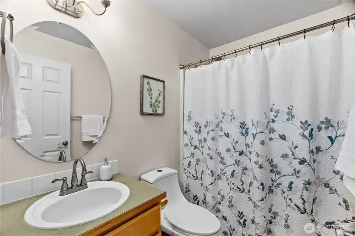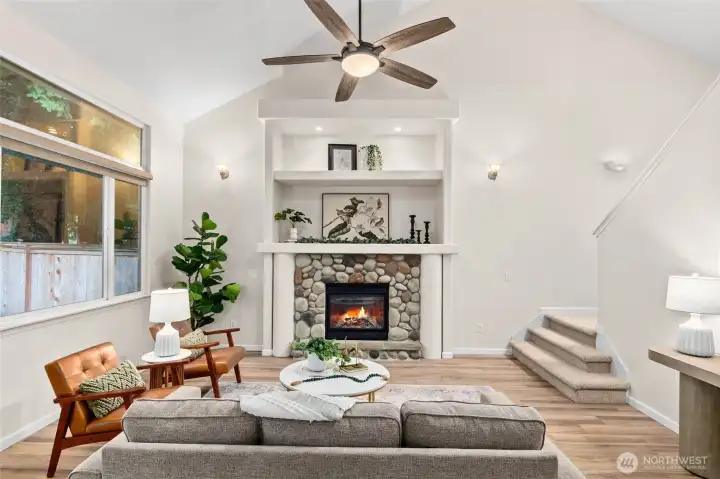 Immaculate 4-bed, 3-bath home in sought-after Chambers Creek Crossing! Bright, spacious & truly move-in ready with thoughtful updates throughout. The main level showcases newer laminate hardwoods, updated lighting & a seamless layout designed for comfortable living & easy entertaining. The spacious kitchen offers newer stainless steel appliances, abundant cabinetry, generous counter space & a walk-in pantry, all open to the dining area & great room with soaring ceilings, oversized windows & a striking stone fireplace with built-in display shelving. Slider leads to a fully fenced, low-maintenance backyard with peaceful greenbelt backdrop. Main floor BR/den & full bath provide flexibility. Upstairs, the dreamy primary suite features an elegant coved ceiling, grand walk-in closet & luxurious 5-piece bath with soaking tub, walk-in shower & dual vanities. Two additional BRs, full bath & laundry room complete the upper level. XL 2-car garage with workbench, storage & generator hook-up. Newer HVAC, water heater, exterior paint, flooring, carpet, baseboards, ceiling fans & fixtures AND 2019 roof & gutters! Community park with playground & sport court across the street! Just a quick stroll to Centennial Elementary- Olympia Schools! Relax, you've found your dream home!