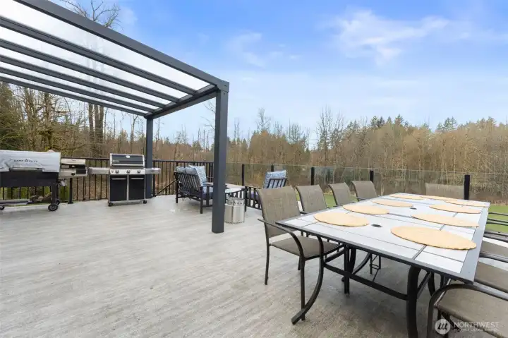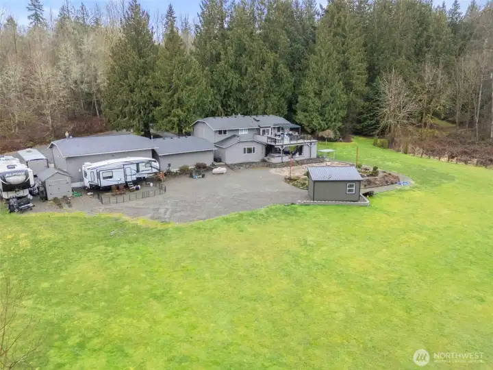 Escape to your own private retreat on nearly 2.5 acres of peaceful surroundings. This beautifully updated estate offers flexible living with ideal space for multigenerational needs or a private home office with separate entry. Thoughtful upgrades throughout include engineered hardwoods, new carpet, updated windows, and a stunning kitchen featuring new cabinetry, quartz countertops, and stainless appliances. The primary suite showcases new LVP flooring, french doors opening to a private balcony, and a spa-inspired ensuite with a walk-in shower. Both the upper and lower level bathrooms have been fully updated, adding modern comfort throughout. The expansive lower level is designed for entertaining, complete with a wet bar, updated bath, and three gas fireplaces with stone surrounds. Outdoor living shines with a custom trex deck with built-in heating, an additional entertainment deck, a tranquil koi pond water feature, and a relaxing jetted hot tub. A brand-new shed—finished with power and heat—creates the perfect office or creative space. Car enthusiasts will appreciate the detached heated garages with epoxy floors, a car lift, and 400-amp service to the home for added functionality and future flexibility. Space, luxury, and versatility come together here — this is more than a home, it’s a lifestyle waiting to be experienced.