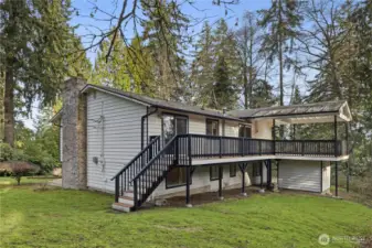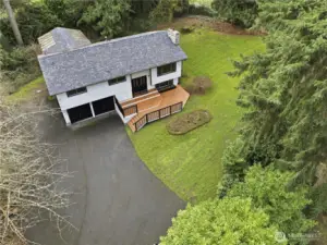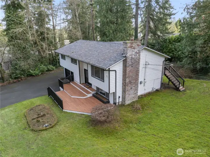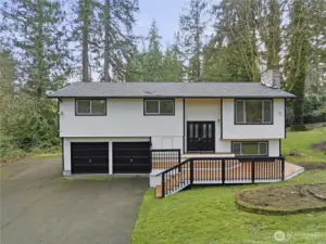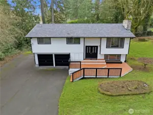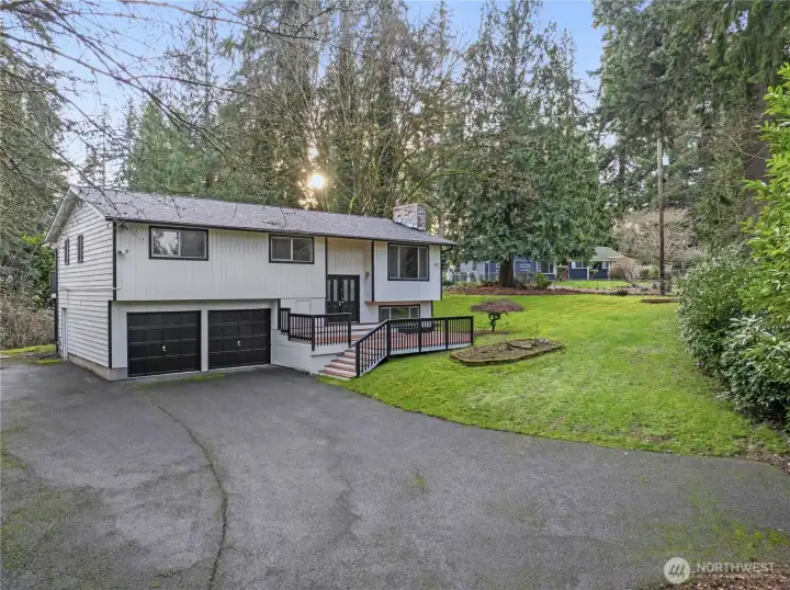 Spacious, updated three-bedroom home with brand new roof on .54 acre lot. Enter home from updated front deck to main floor and be greeted by beautiful hardwood floors. Upstairs floor plan includes living room with brick wood-burning fireplace, dining room with access to back deck for al fresco dining, and kitchen with eating space. Three bedrooms including primary suite with ensuite ¾ bathroom and access to updated entertainment-sized deck with covered portion for year-round enjoyment. Full guest bathroom. Downstairs floor plan includes large family room with additional fireplace insert, utility room, and powder room. Two-car attached garage, plus tons of additional parking space for RV/boat/toys/guests. Extra storage shed under deck. Additional updates include new gutters, fresh interior and exterior paint, and new flooring. Fantastic location just minutes to Mill Creek Town Center, plus easy access to I-5 , I-405, major business centers, Alderwood Mall, and several nearby parks and trails. Mukilteo School District.