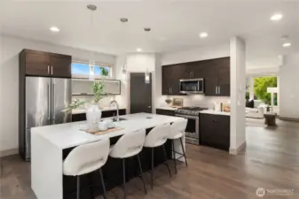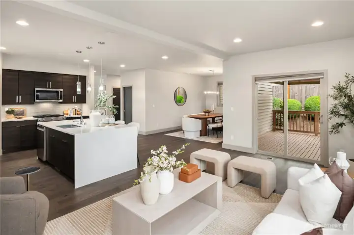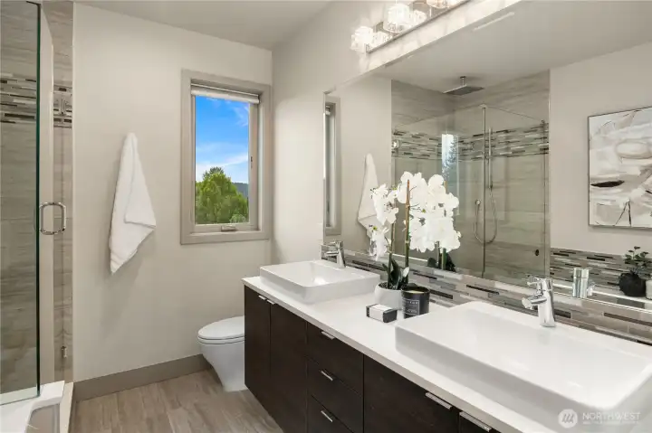 Modern elegance and design, crafted by award-winning RD Homes. This 3-Star Built Green residence, set along the hillside of In Town Duvall, captures sweeping valley views from every angle. Vaulted ceilings enhance the living space, creating an atmosphere both modern and refined. An open concept layout seamlessly connects the gourmet kitchen with high-end appliances, the spacious dining room, and the light filled living area that extends to a private outdoor patio. The grounds are mature and manicured, with towering arborvitae providing year-round privacy and evergreen plantings completing the landscape. Primely positioned in Downtown Duvall, homeowners benefit from the city’s newly completed sidewalk improvements, enhancing walkability and strengthening the direct connection to the town’s restaurants, shops, and everyday conveniences. This is luxury living in the heart of Duvall.